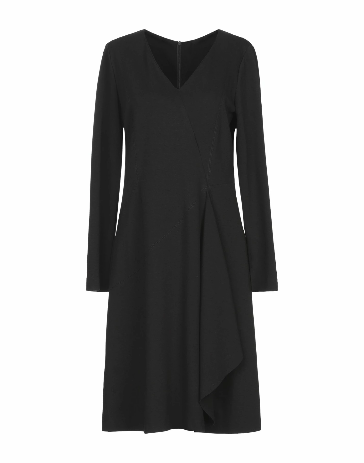 jersey, ruffles, basic solid color, v-neck, long sleeves, no pockets, rear closure, zip, unlined, stretch