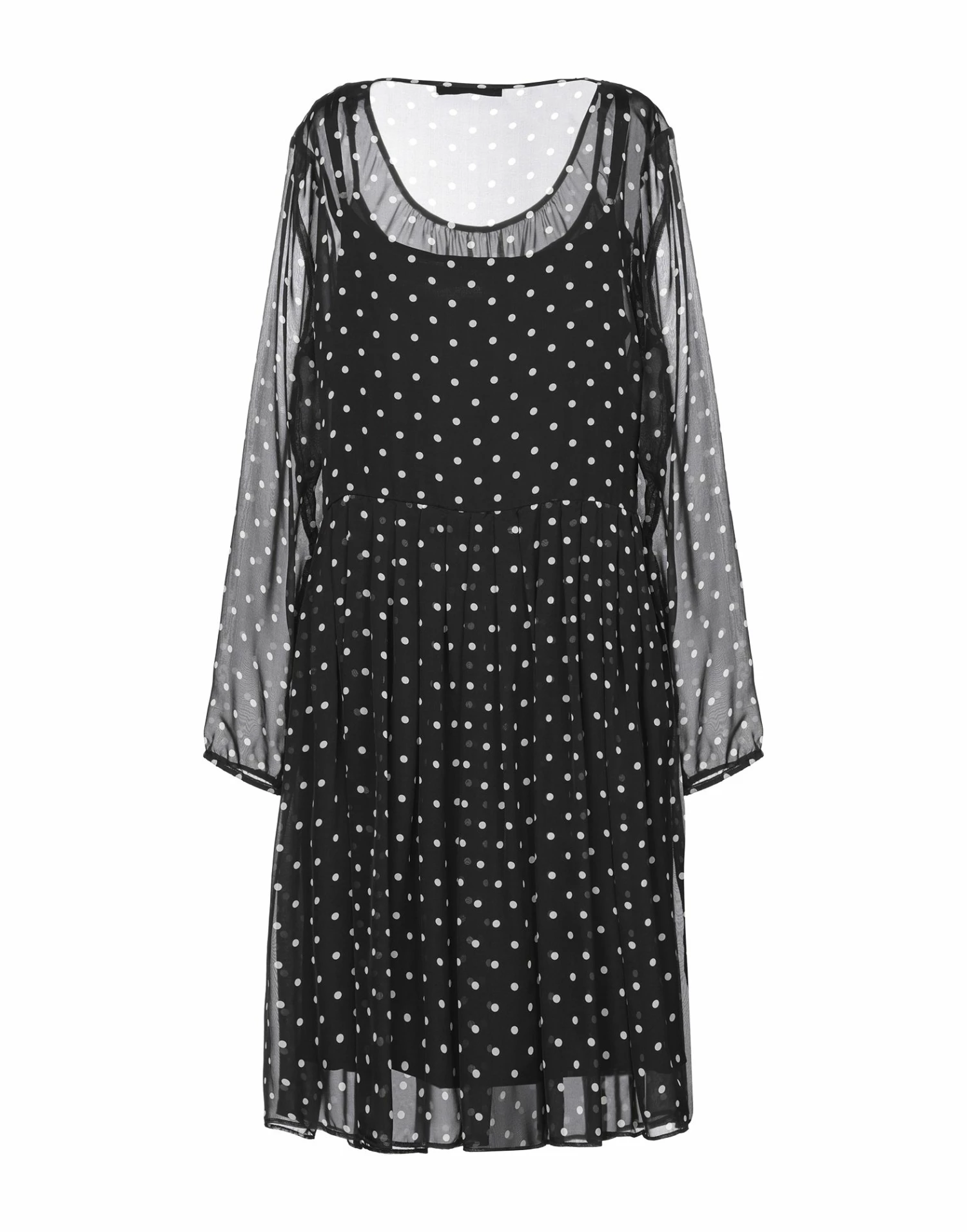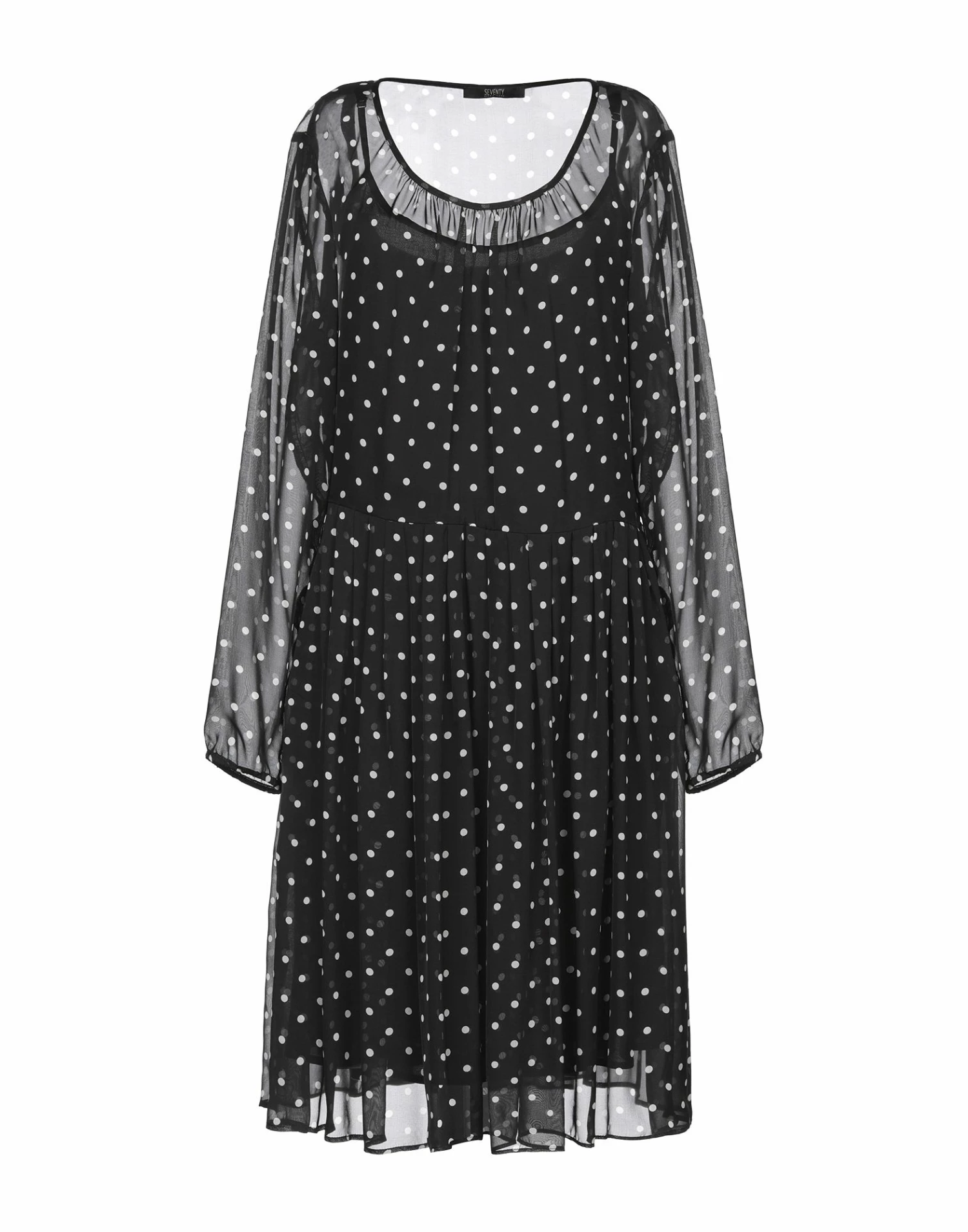 voile, folds, polka-dot, round collar, long sleeves, no pockets, side closure, zip, slip to line