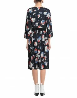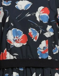 plain weave, no appliqués, floral design, round collar, 3/4 length sleeves, unlined, multipockets, stretch