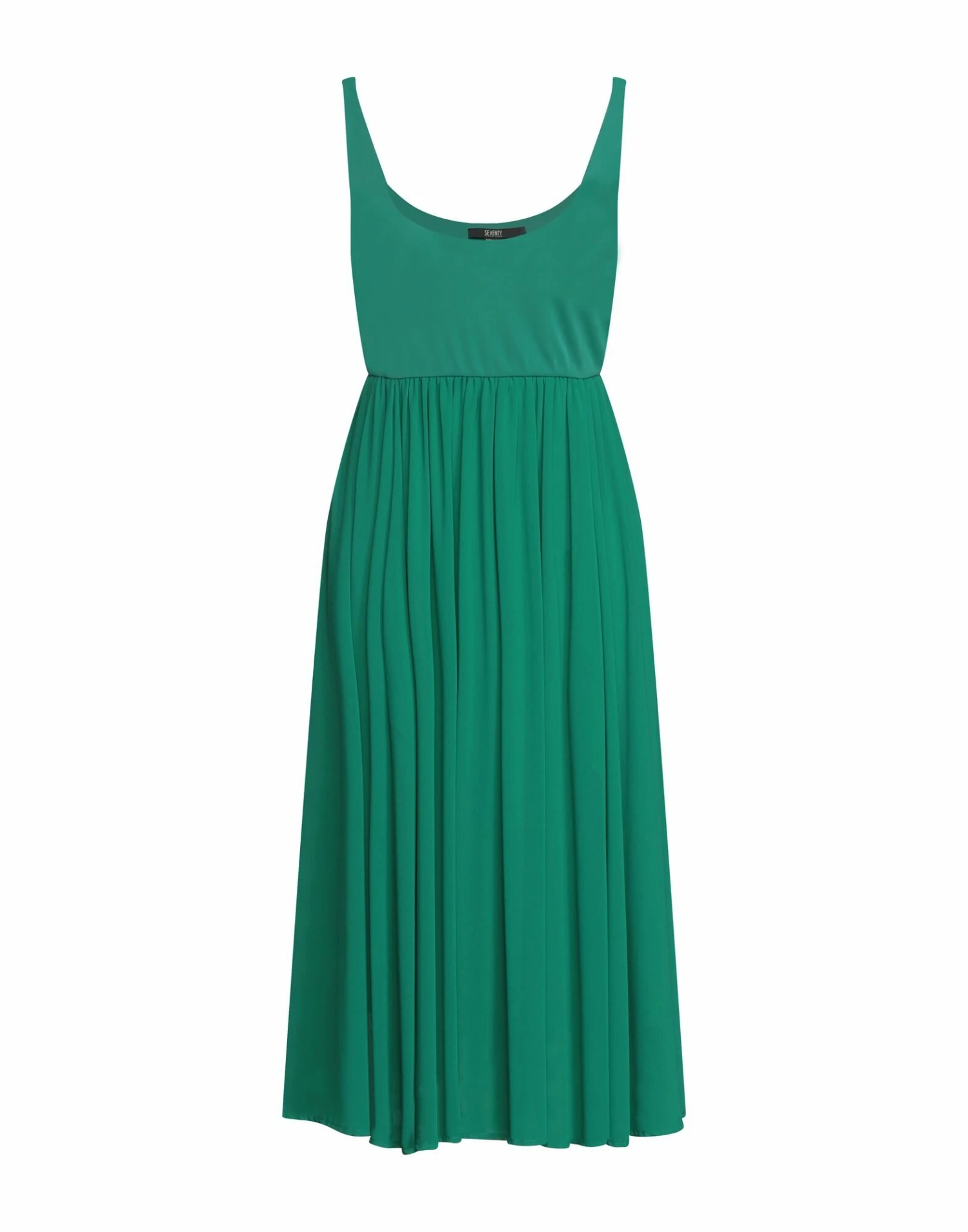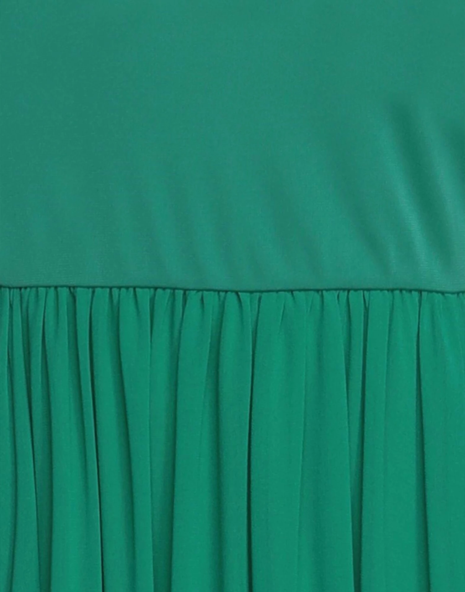 jersey, crepe, frills, basic solid color, round collar, sleeveless, no pockets, no fastening, fully lined, stretch, dress