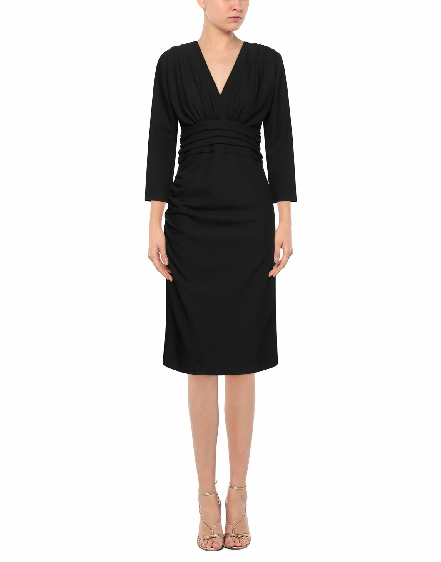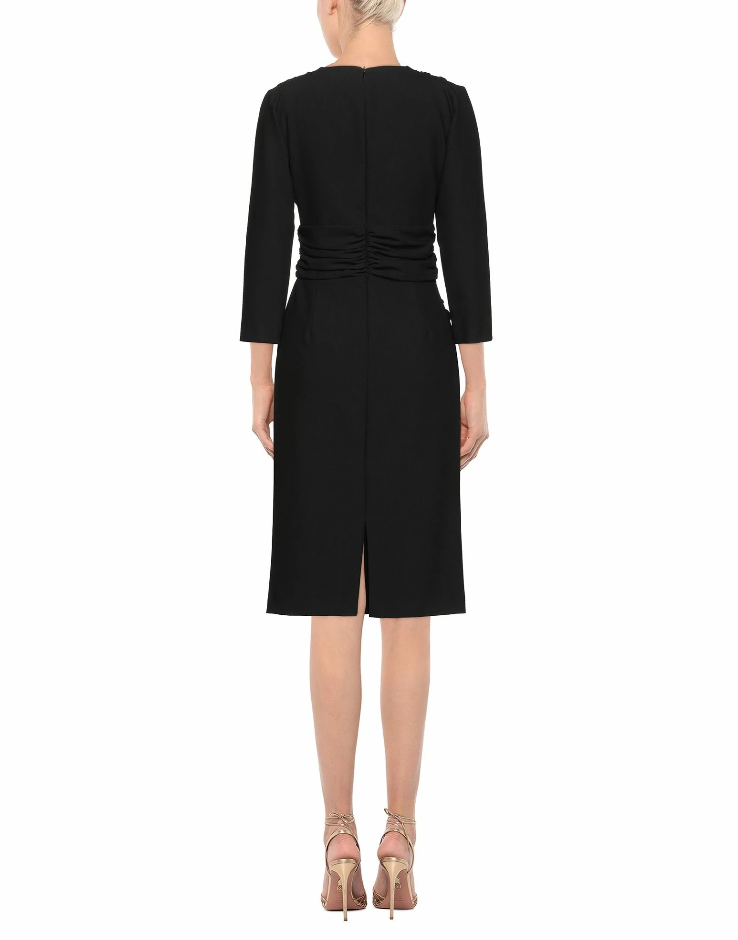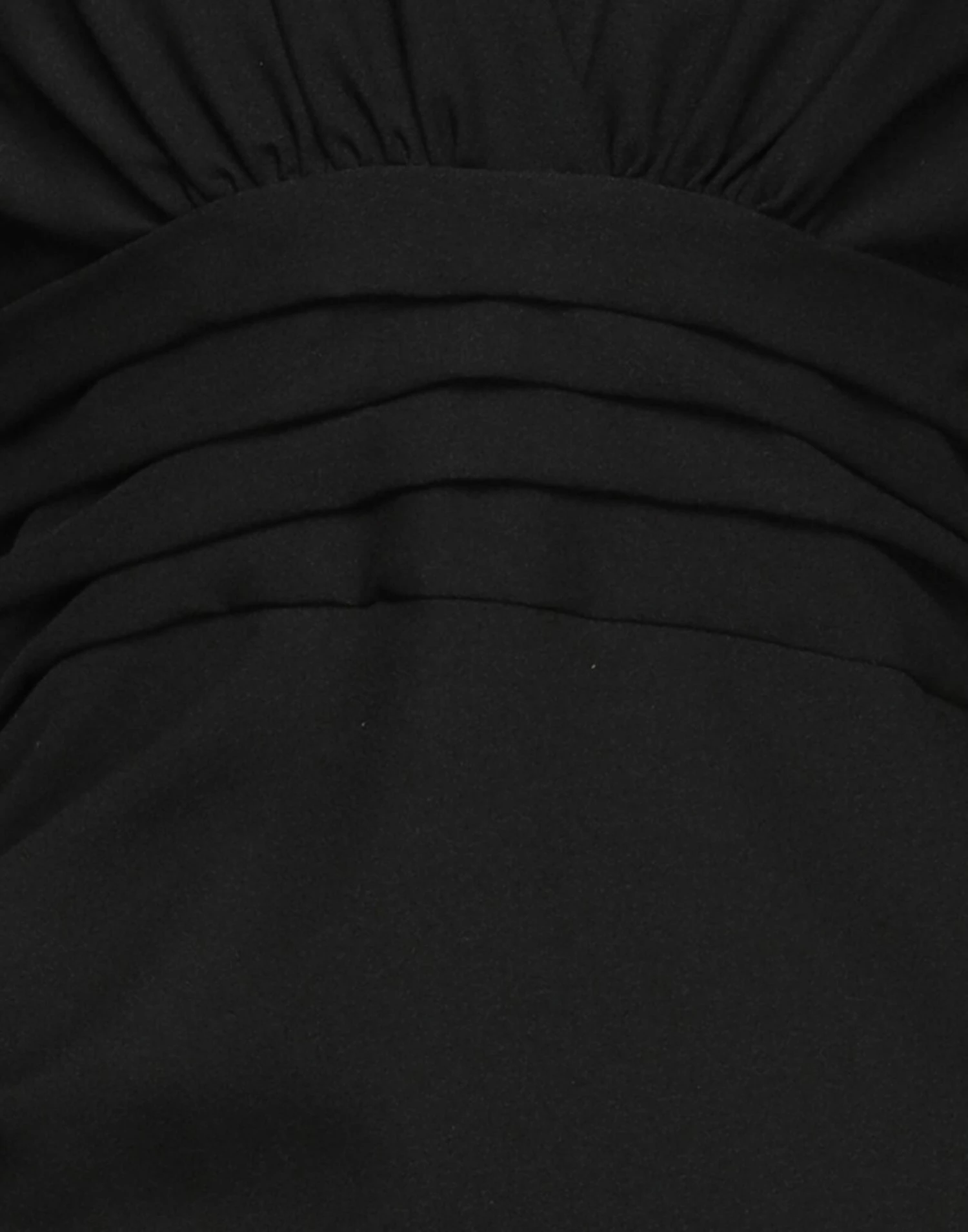 crepe, no appliqués, solid color, v-neck, long sleeves, fully lined, zipper closure, no pockets, stretch