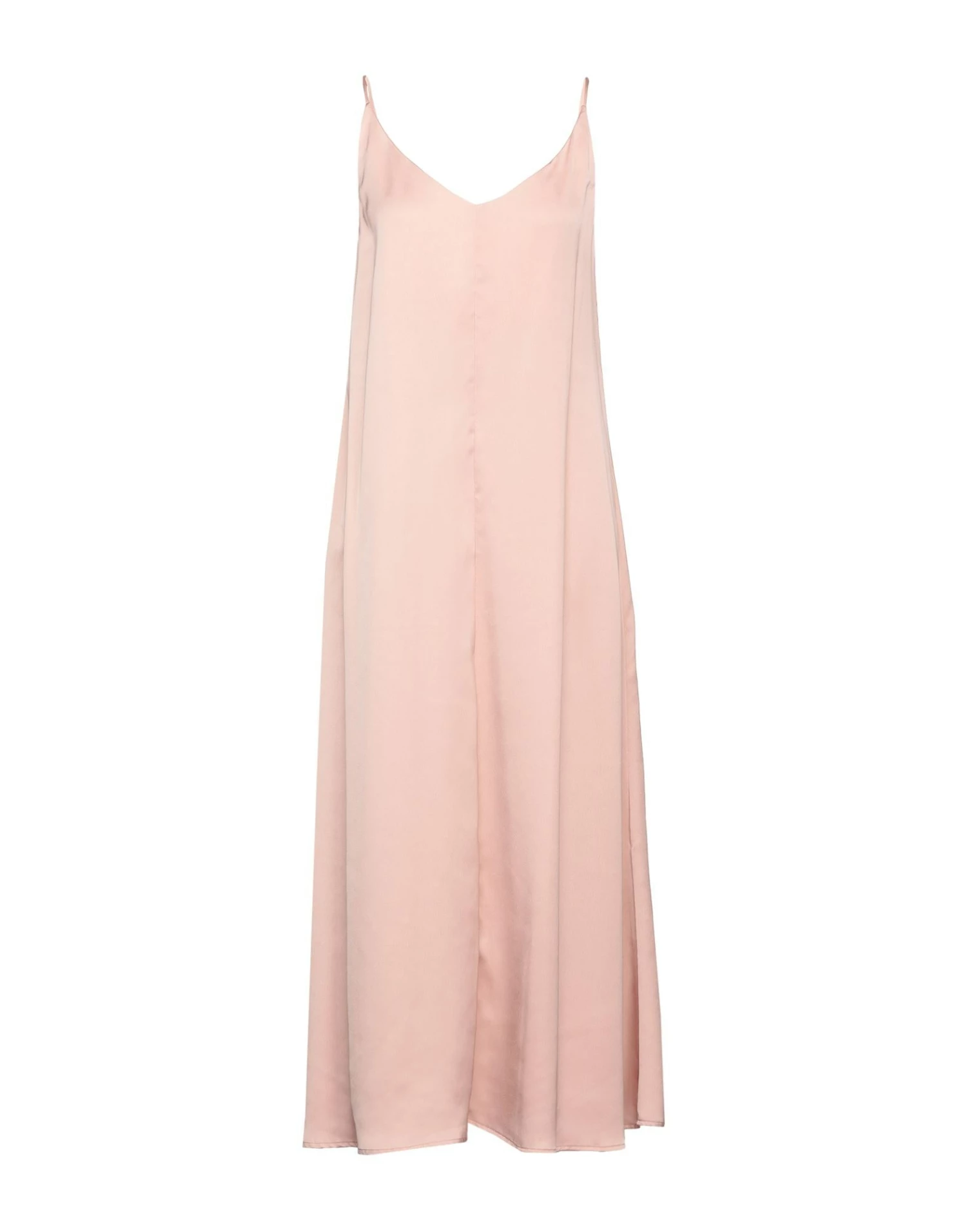 satin, solid color, round collar, unlined, no appliqués, sleeveless, pencil style