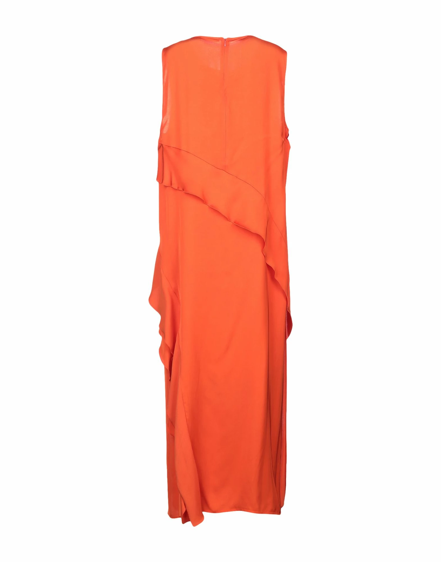 satin, ruched, basic solid color, round collar, sleeveless, no pockets, rear closure, zip, unlined, dress