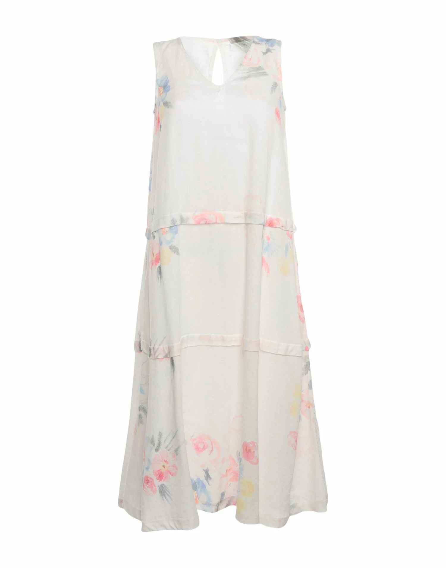 plain weave, no appliqués, floral design, v-neck, sleeveless, multipockets, no fastening, slip to line