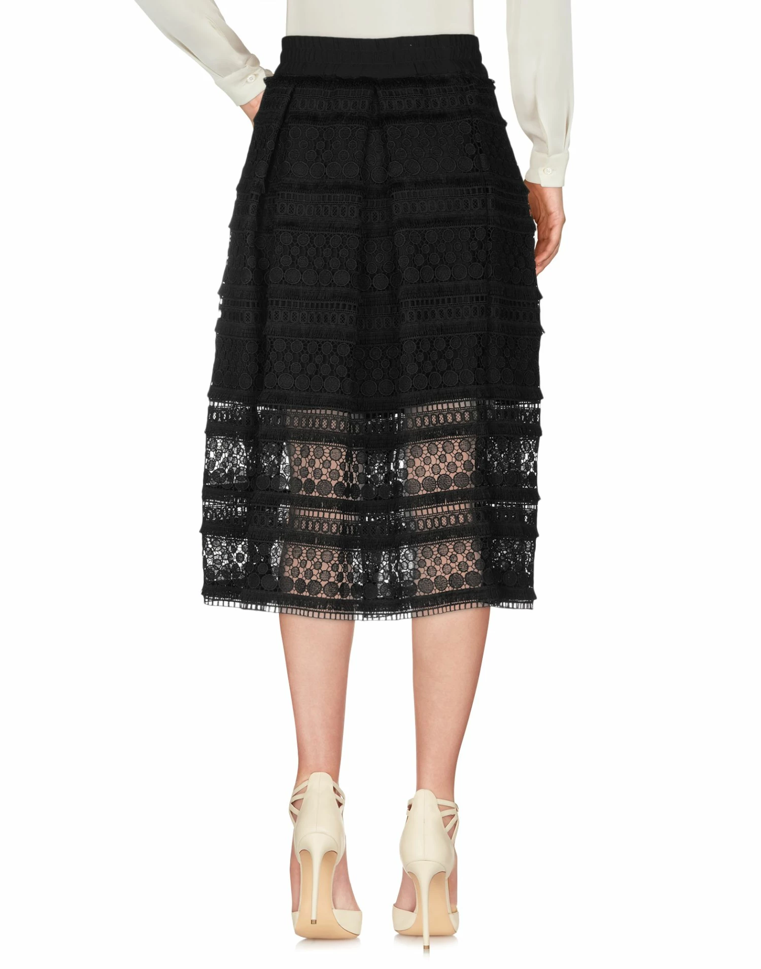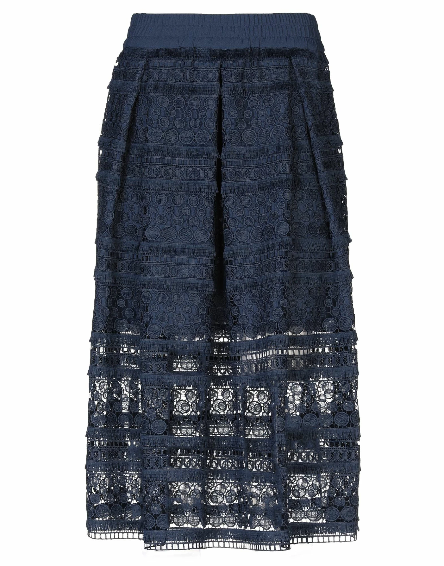 lace, folds, basic solid color, mid rise, elasticized waist, no pockets, no fastening, fully lined, pleated style