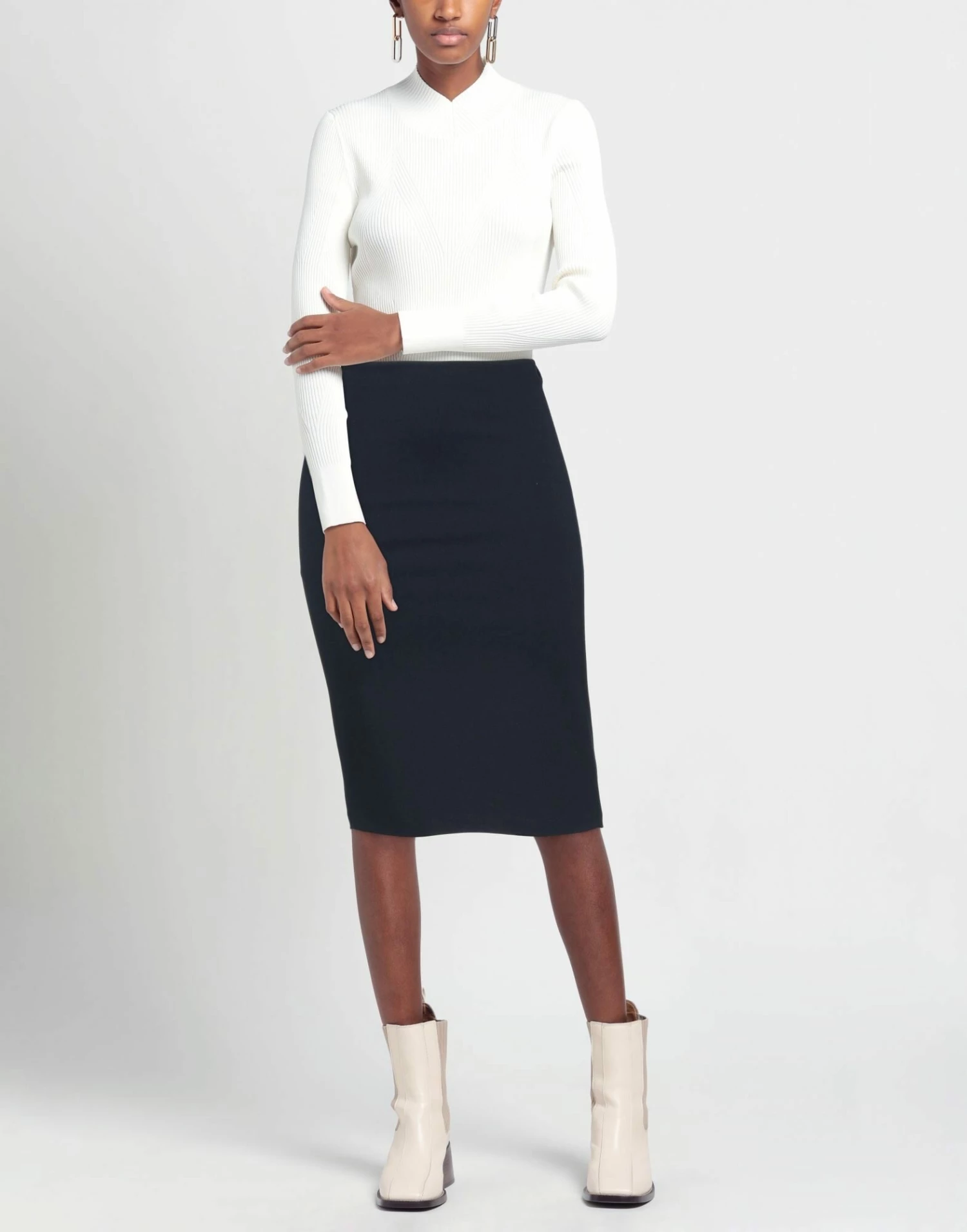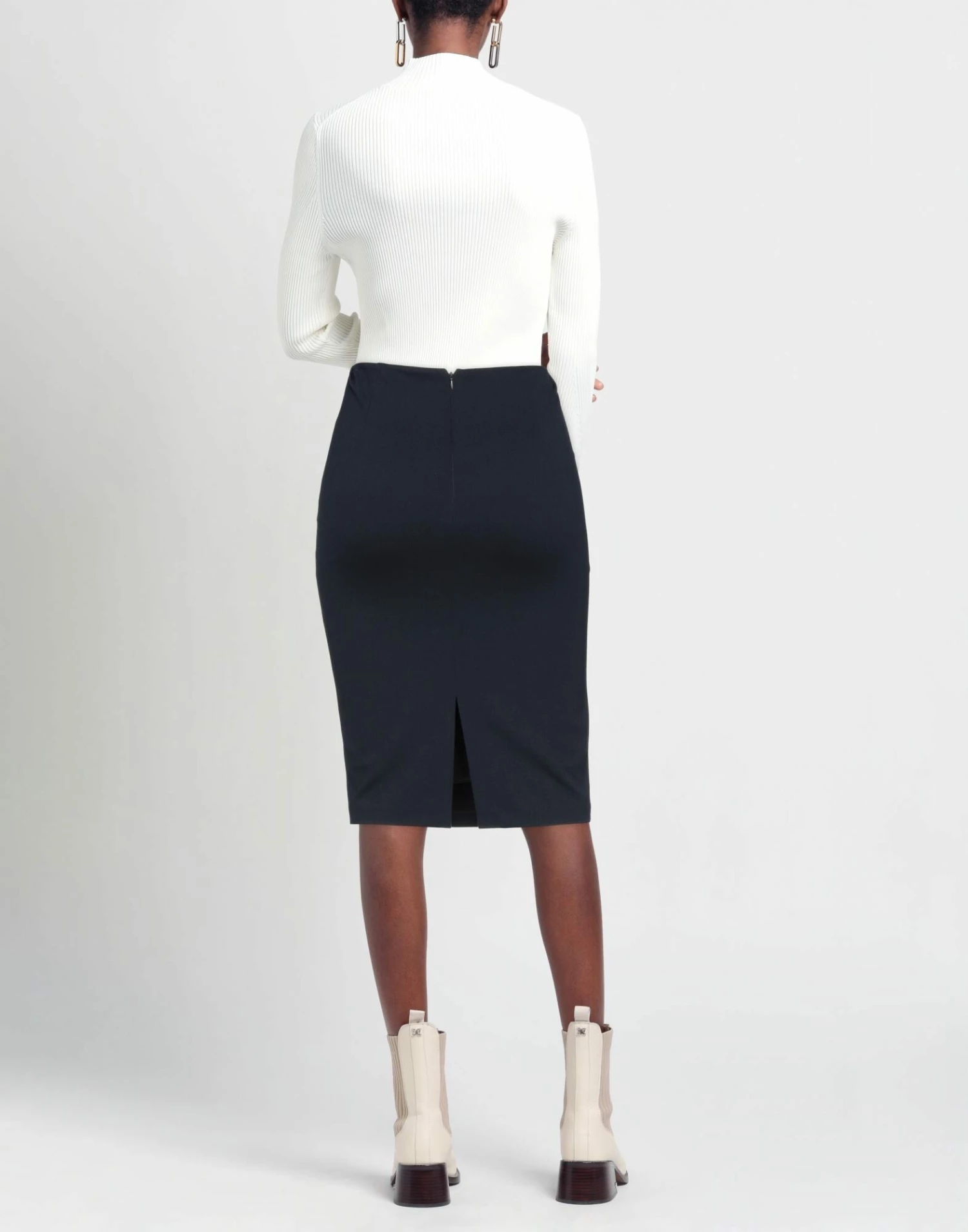 jersey, basic solid color, no appliqués, zipper closure, rear closure, no pockets, fully lined, pencil style