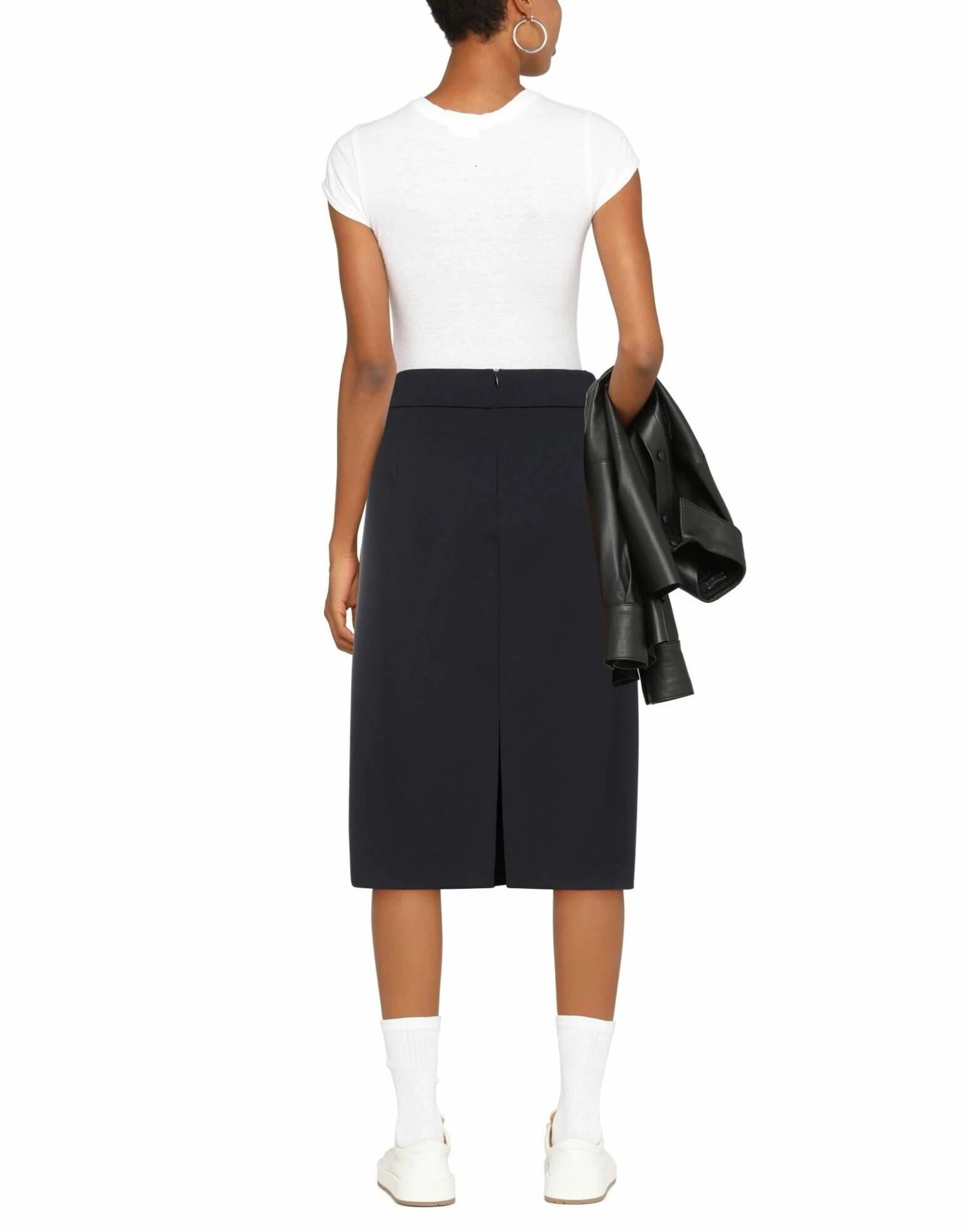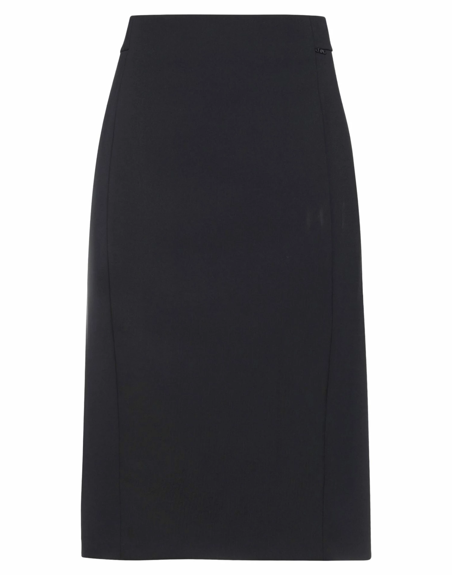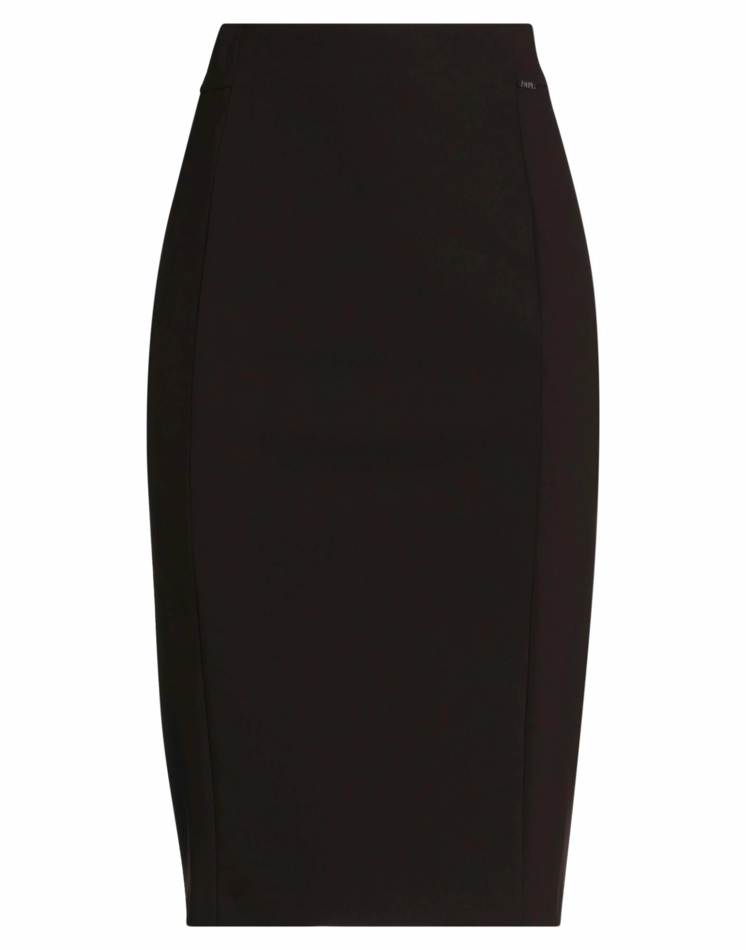 jersey, brand logo, solid color, elasticized waist, no pockets, rear closure, zipper closure, fully lined, rear slit, stretch