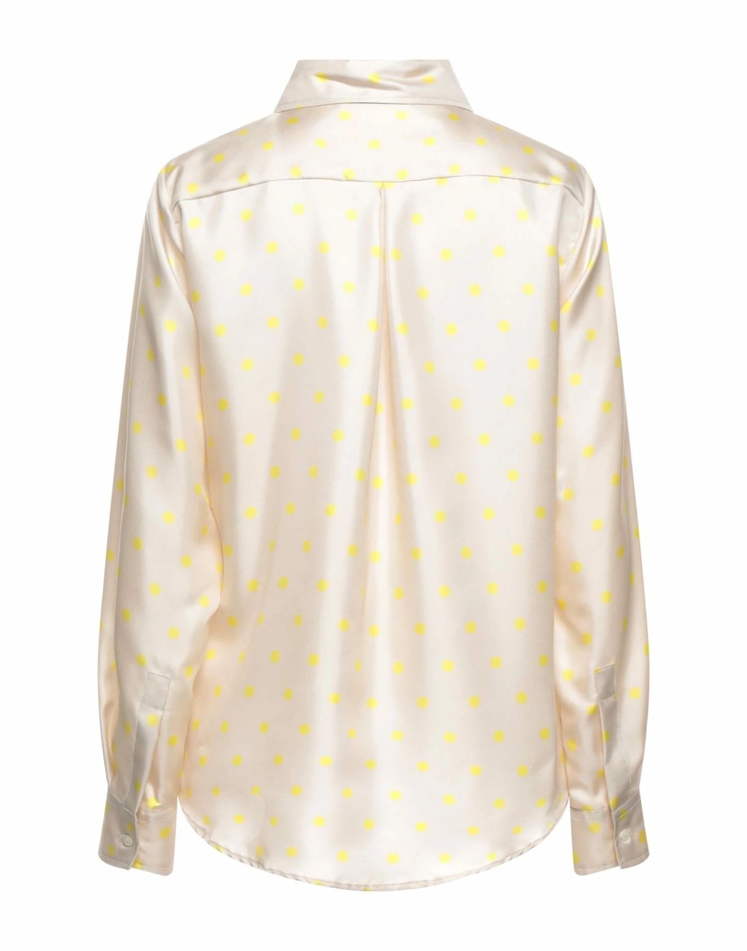 satin, logo, polka-dot, front closure, button closing, long sleeves, classic neckline, no pockets, contains non-textile parts of animal origin