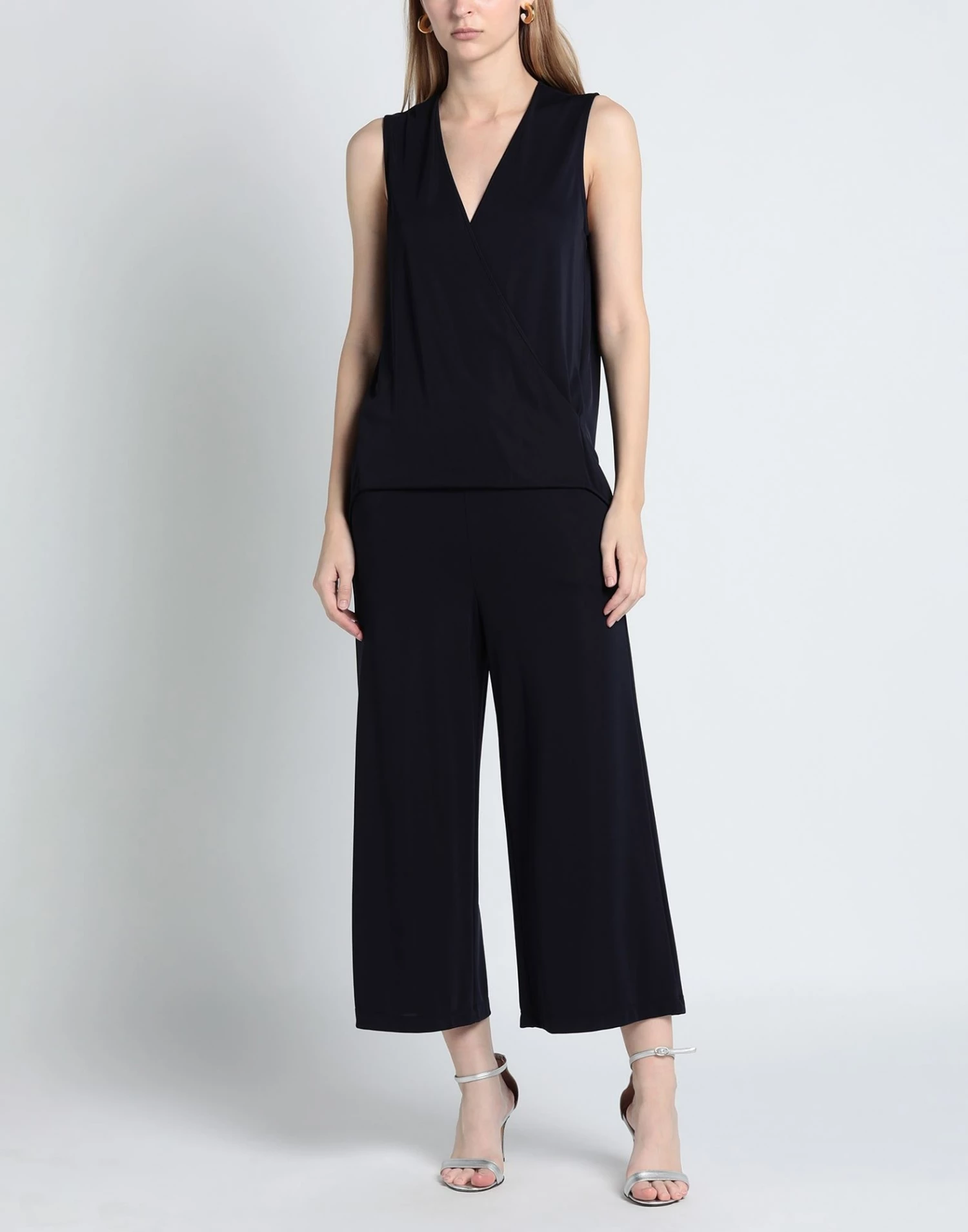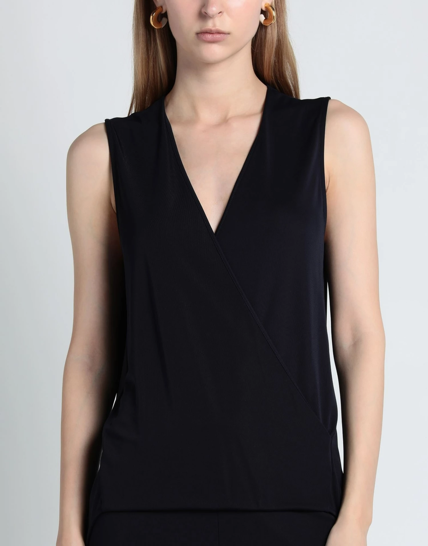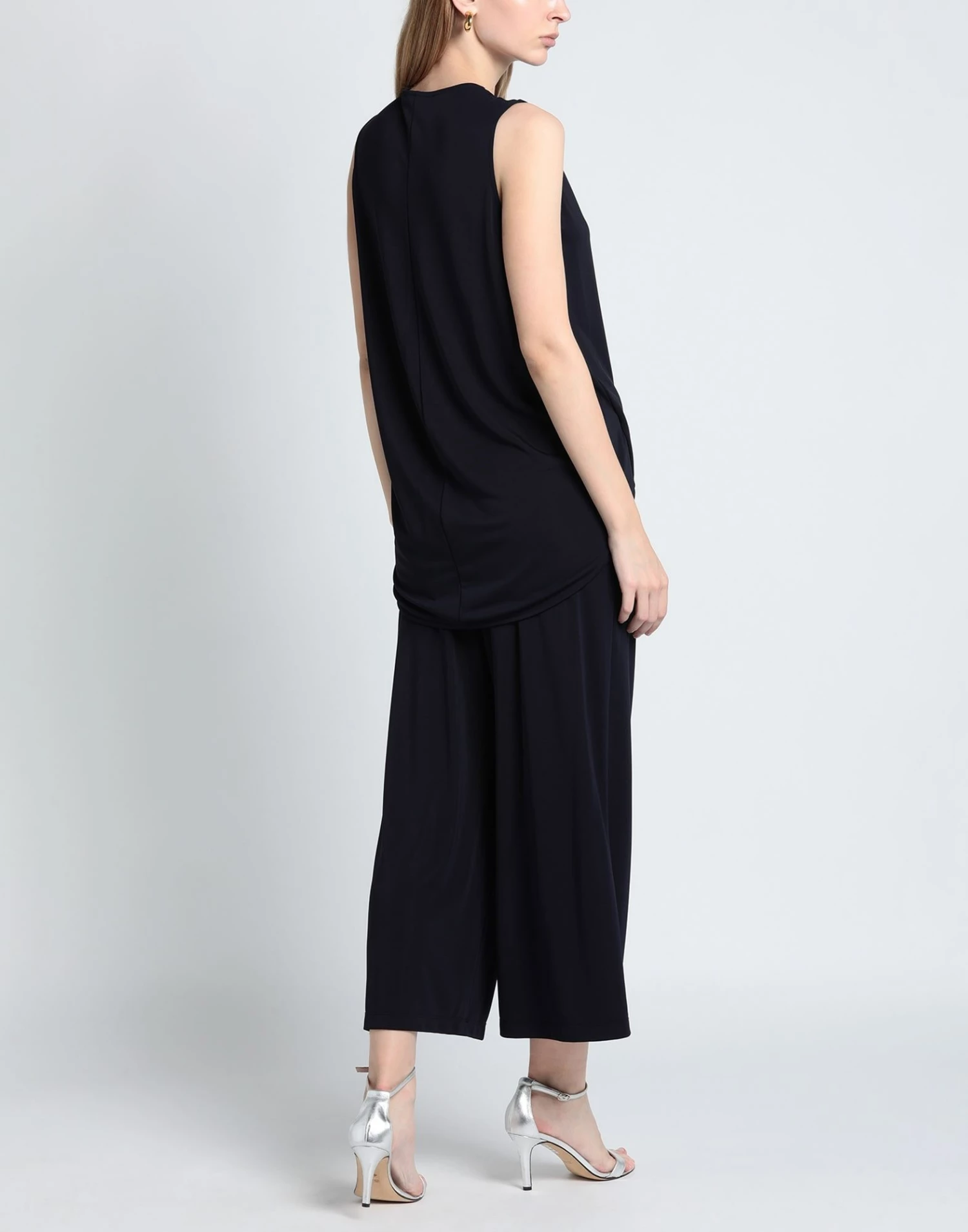 jersey, no appliqués, solid color, deep neckline, sleeveless, no pockets, high waisted, elasticized waist, unlined, stretch, pants set