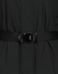 techno fabric, belt, solid colour with appliqués, turtleneck, single-breasted , long sleeves, duck down filling, multipockets, contains non-textile parts of animal origin, snap buttons fastening, zipper closure, pocket with zipper