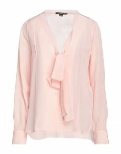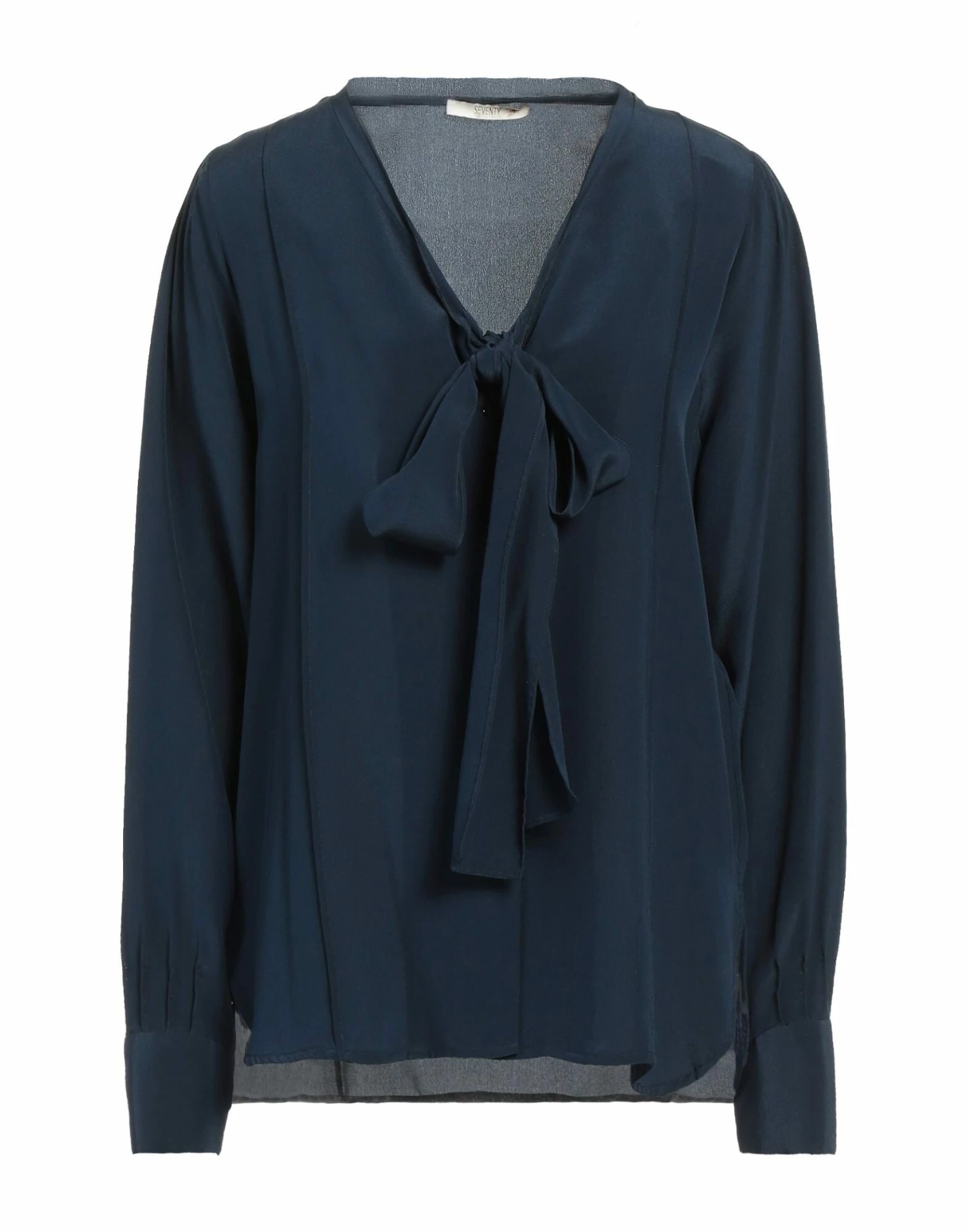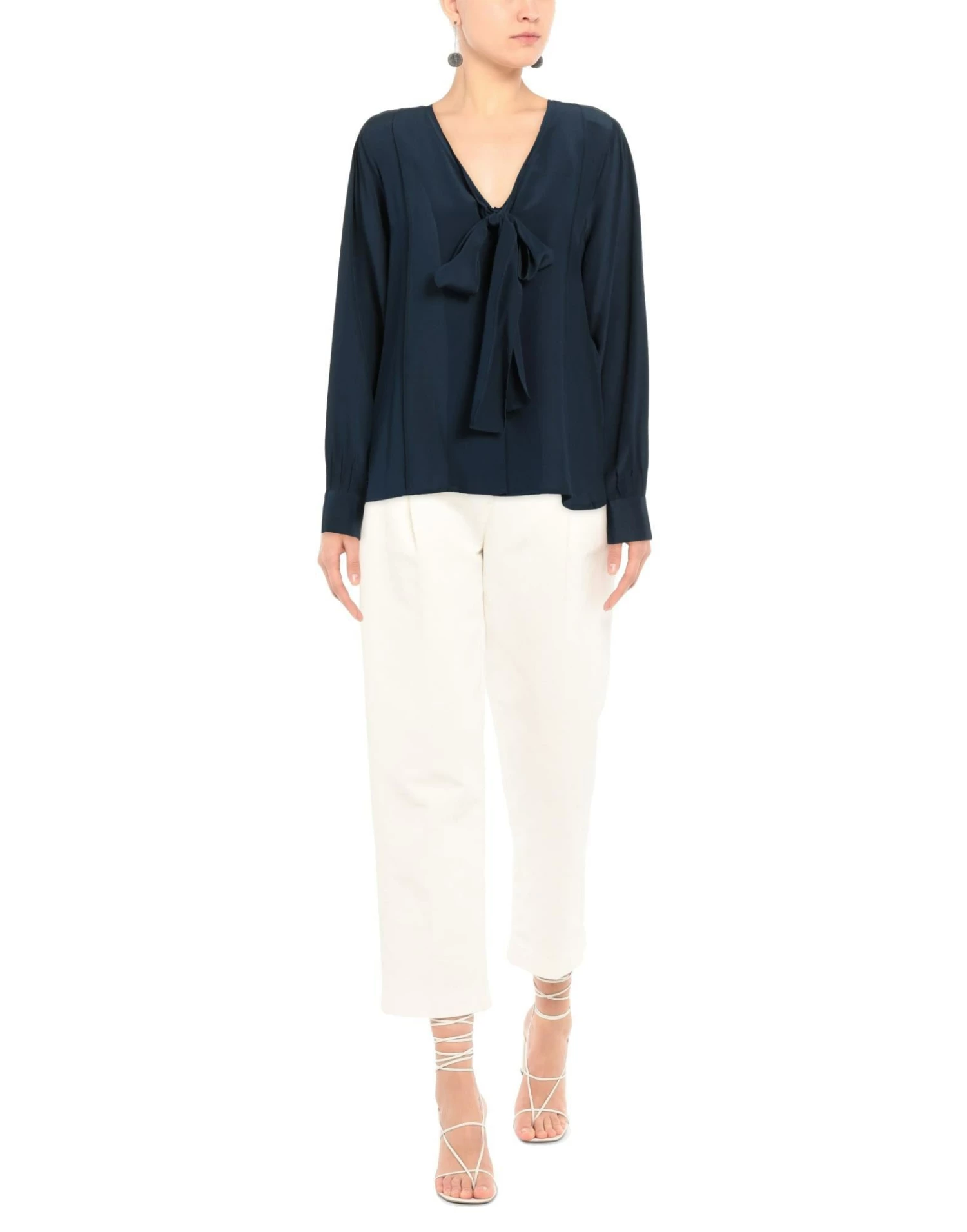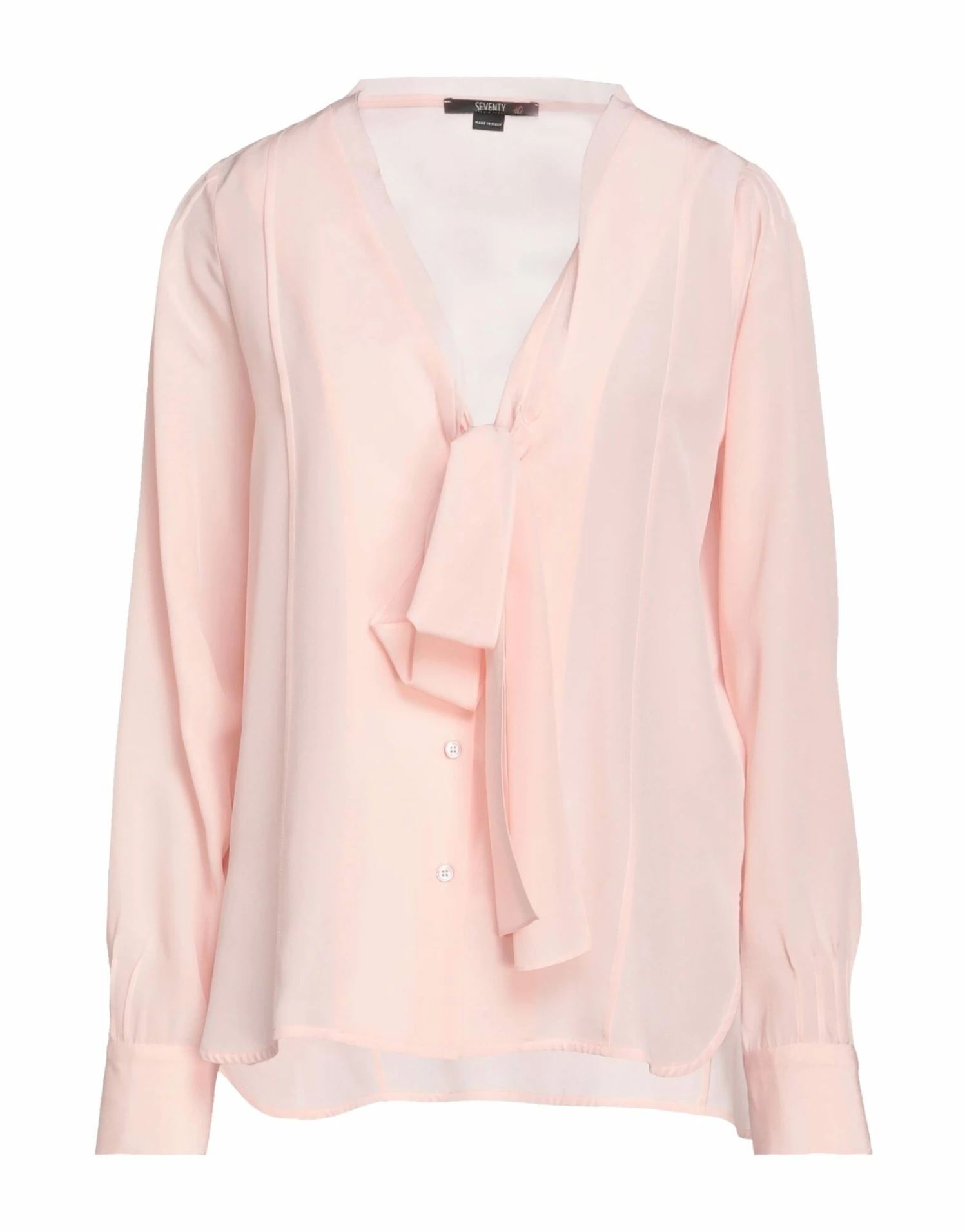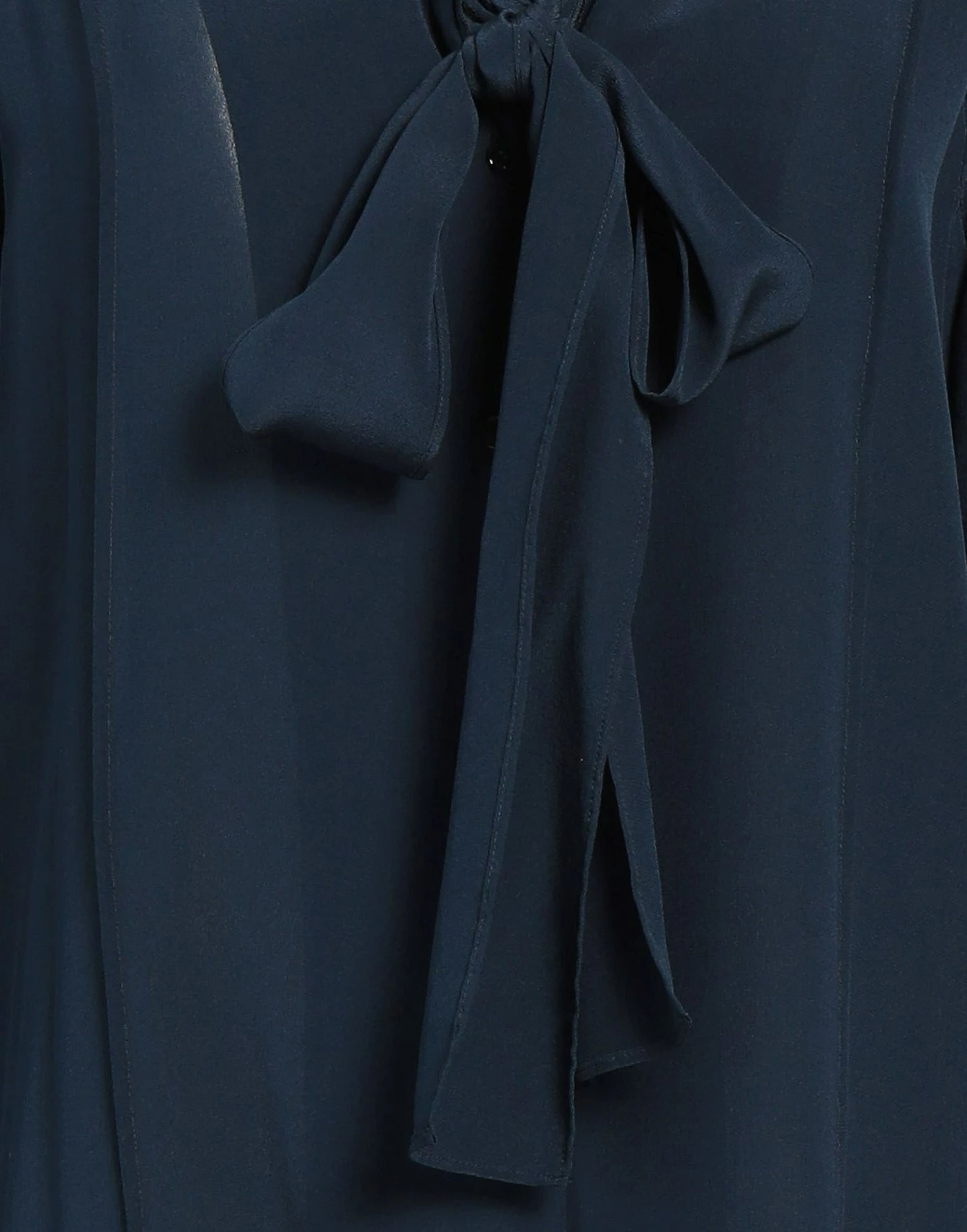crepe, no appliqués, solid color, bow collar, long sleeves, buttoned cuffs, button closing, no pockets