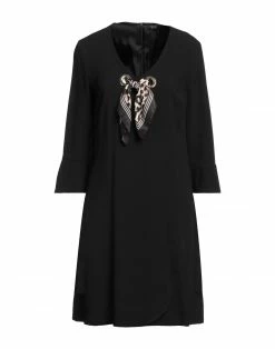 crepe, metal applications, solid color, v-neck, 3/4 length sleeves, zipper closure, no pockets, fully lined