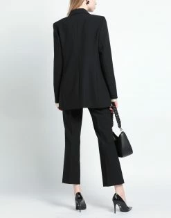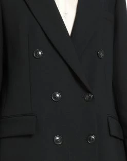 plain weave, brand logo, solid color, lapel collar, double-breasted, long sleeves, fully lined, button closing, multipockets, pocket with flap, high waisted, stretch