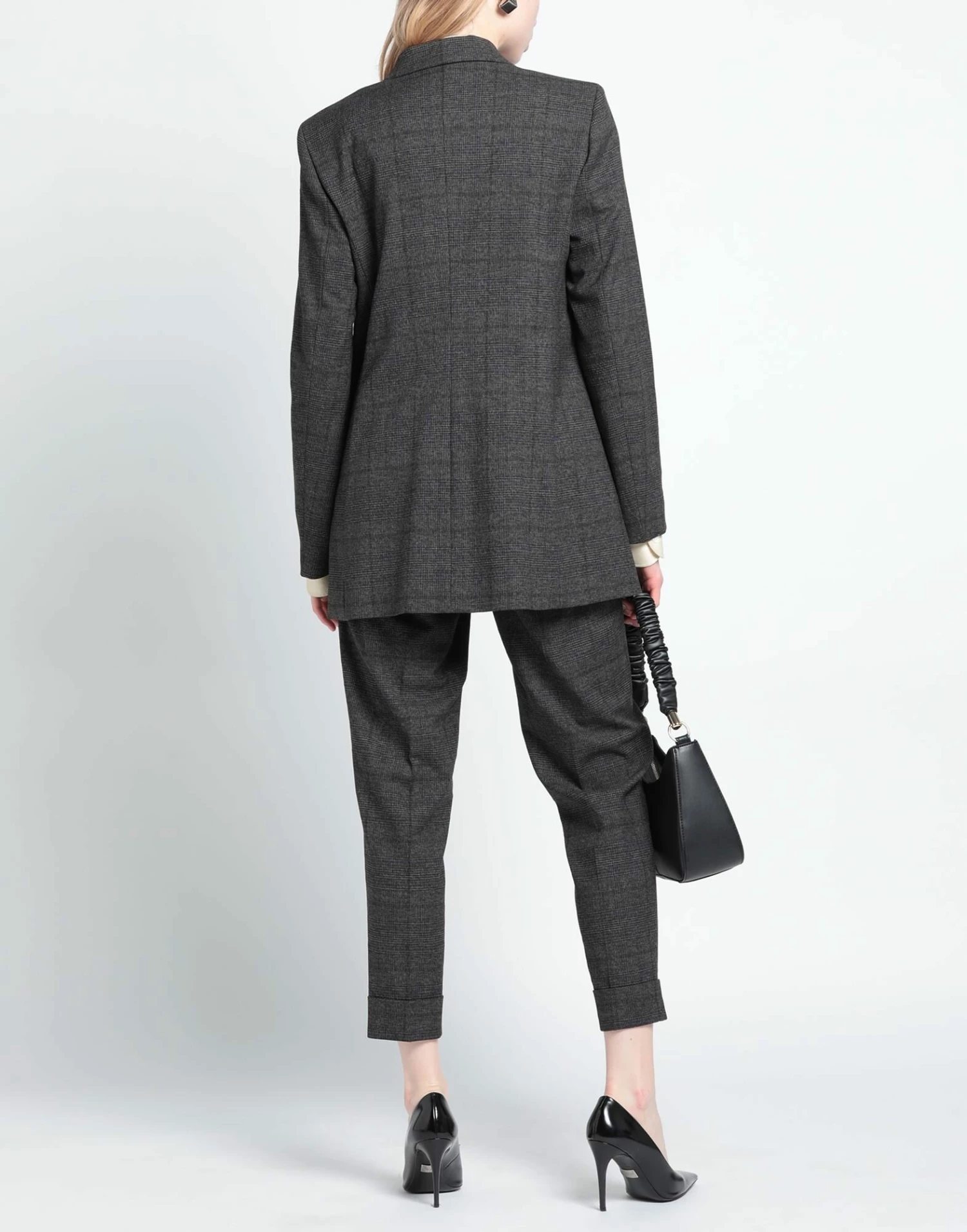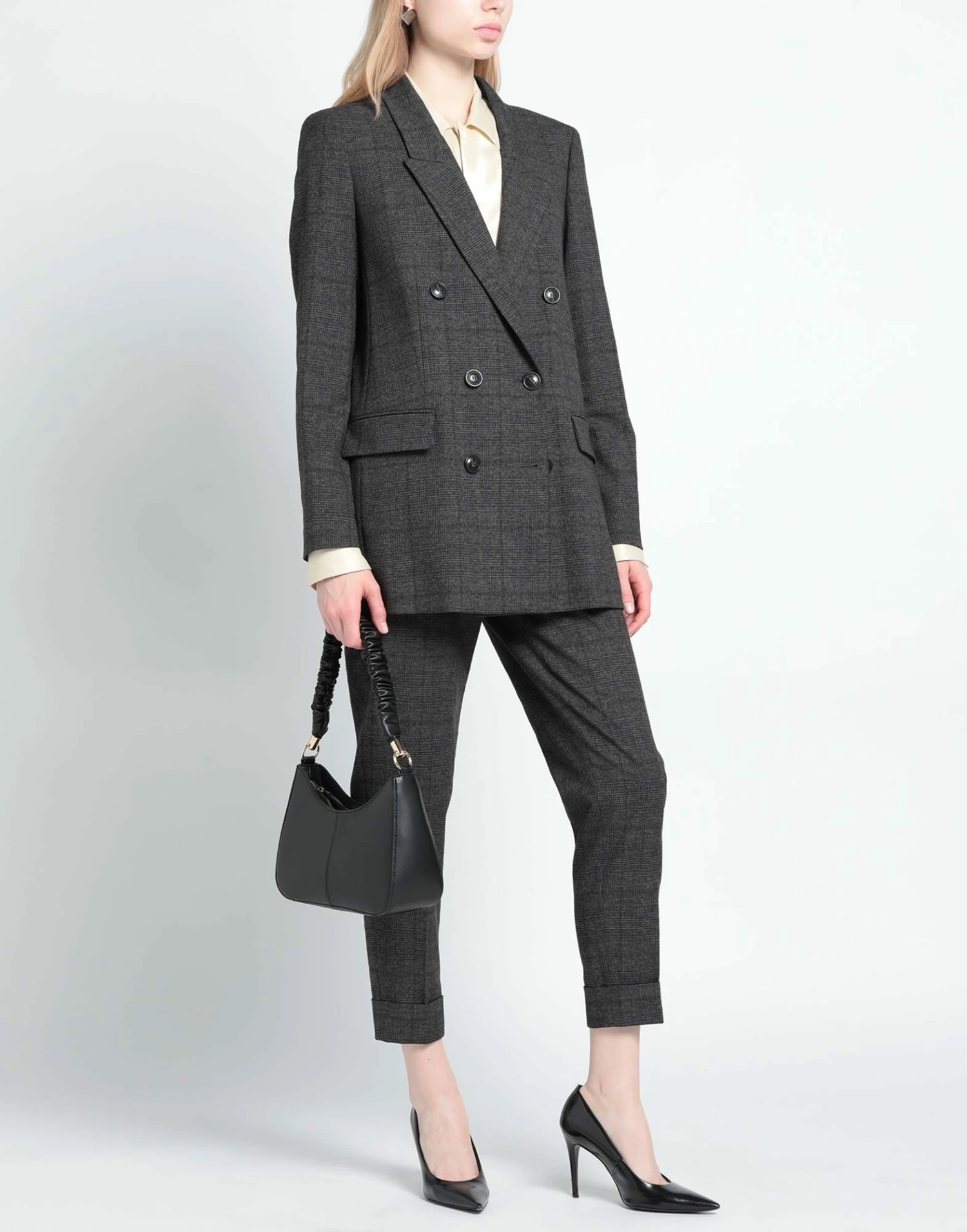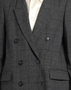 plain weave, metal applications, brand logo, glen plaid, lapel collar, double-breasted, long sleeves, fully lined, hook-and-eye closure, zipper closure, multipockets, pocket with flap, stretch