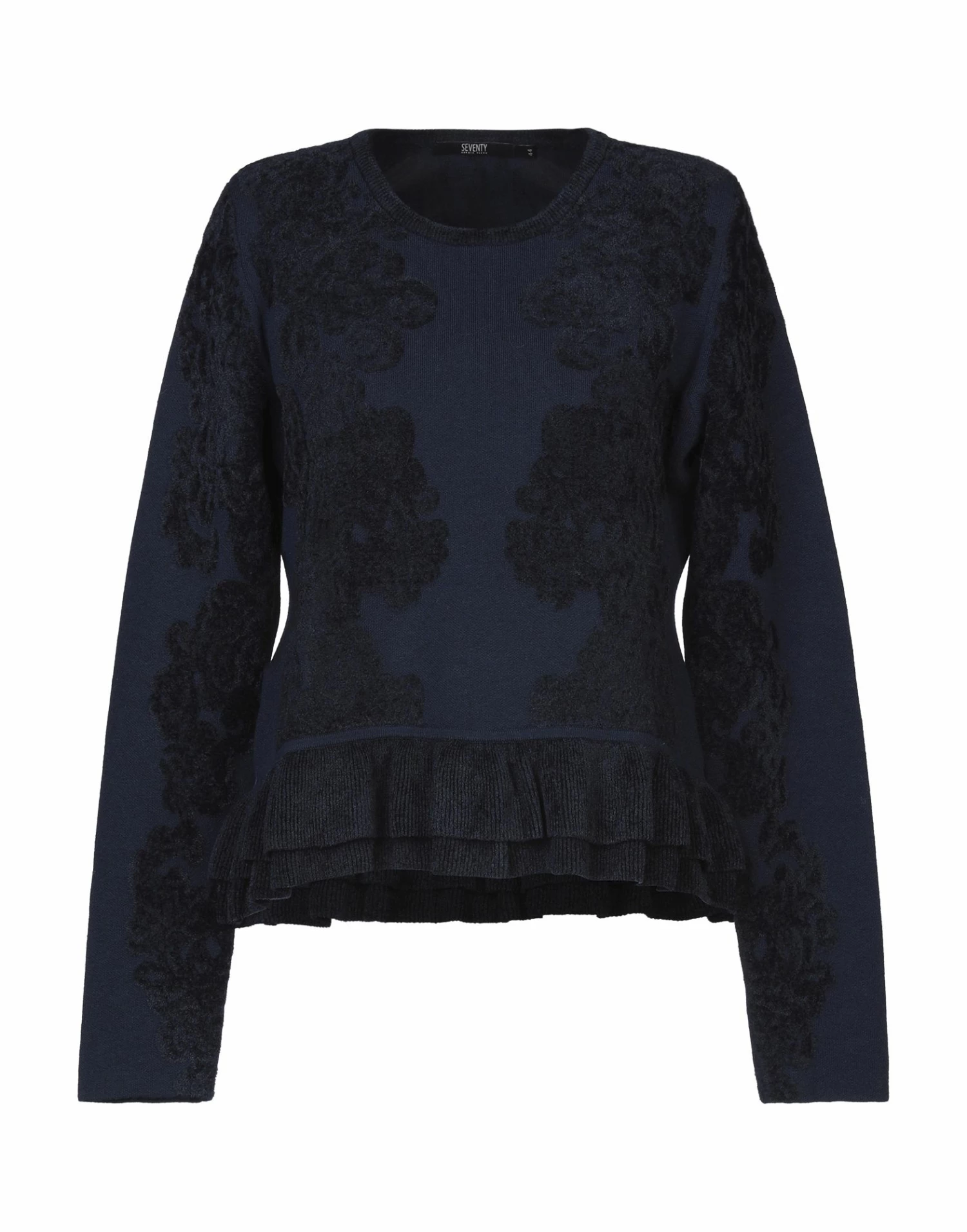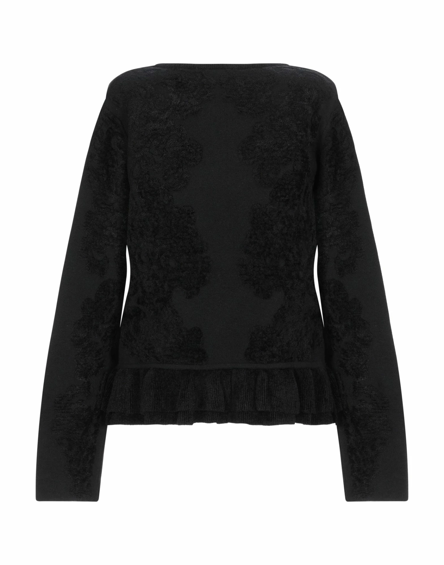knitted, medium-weight knit, no appliqués, round collar, long sleeves, no pockets, solid color