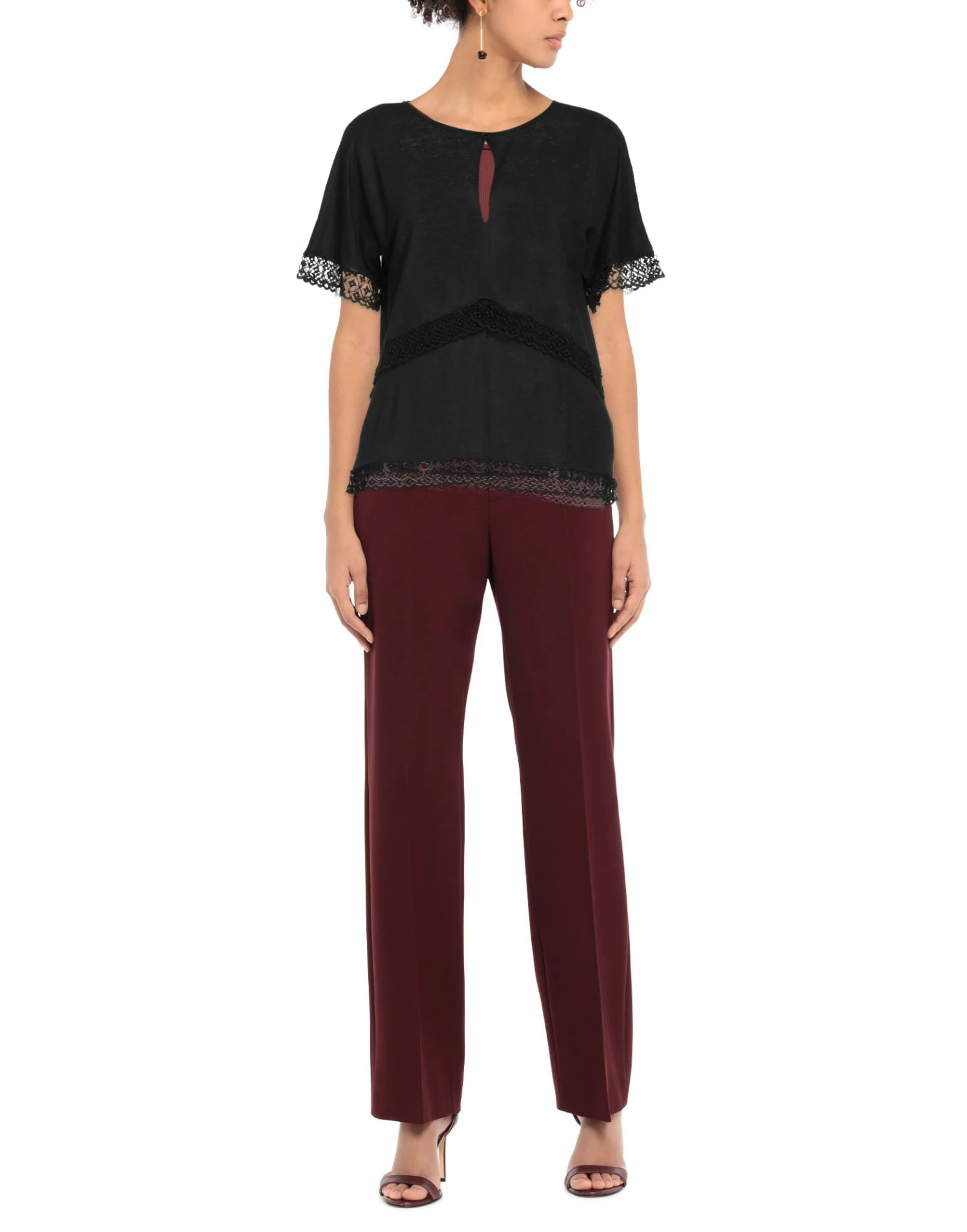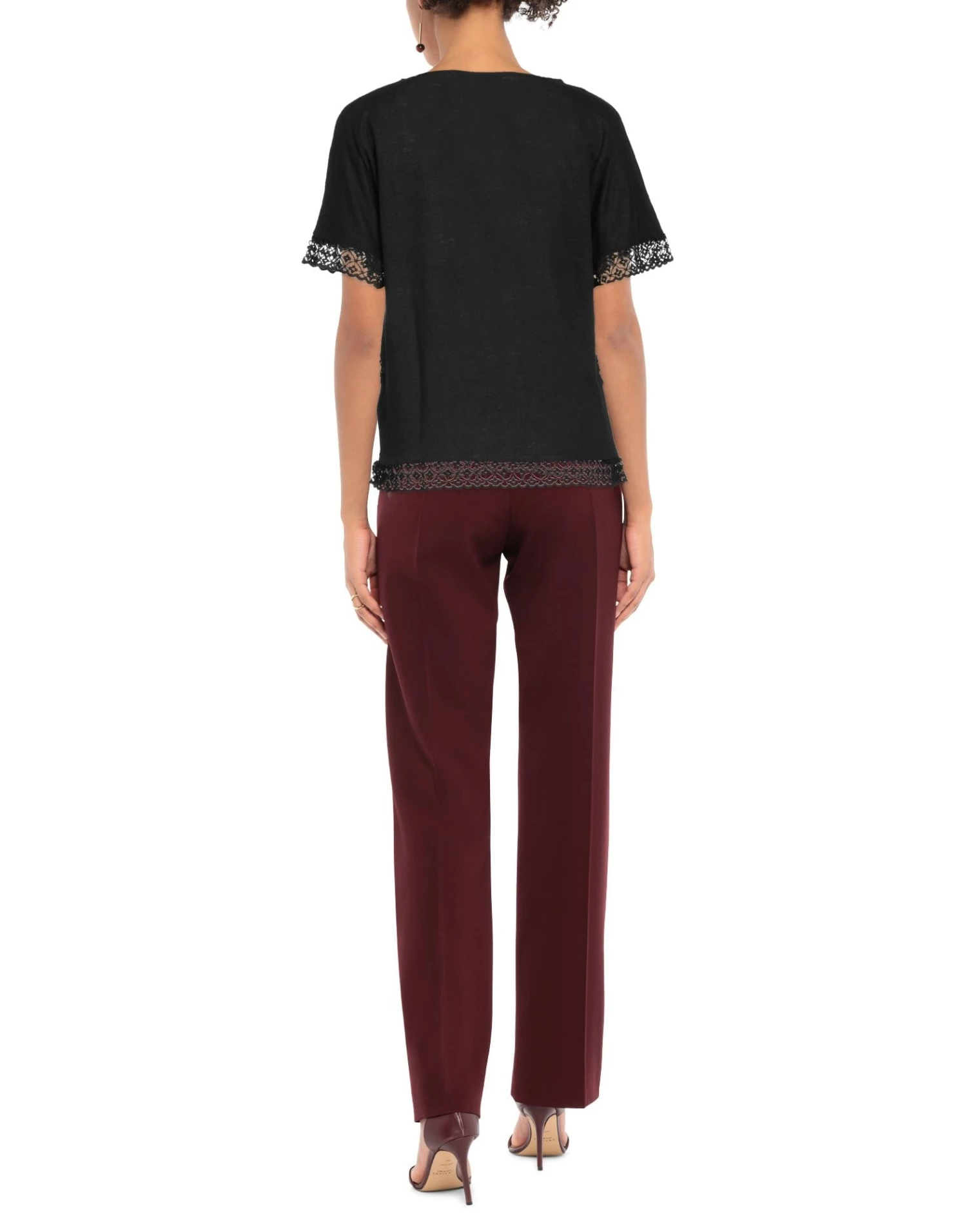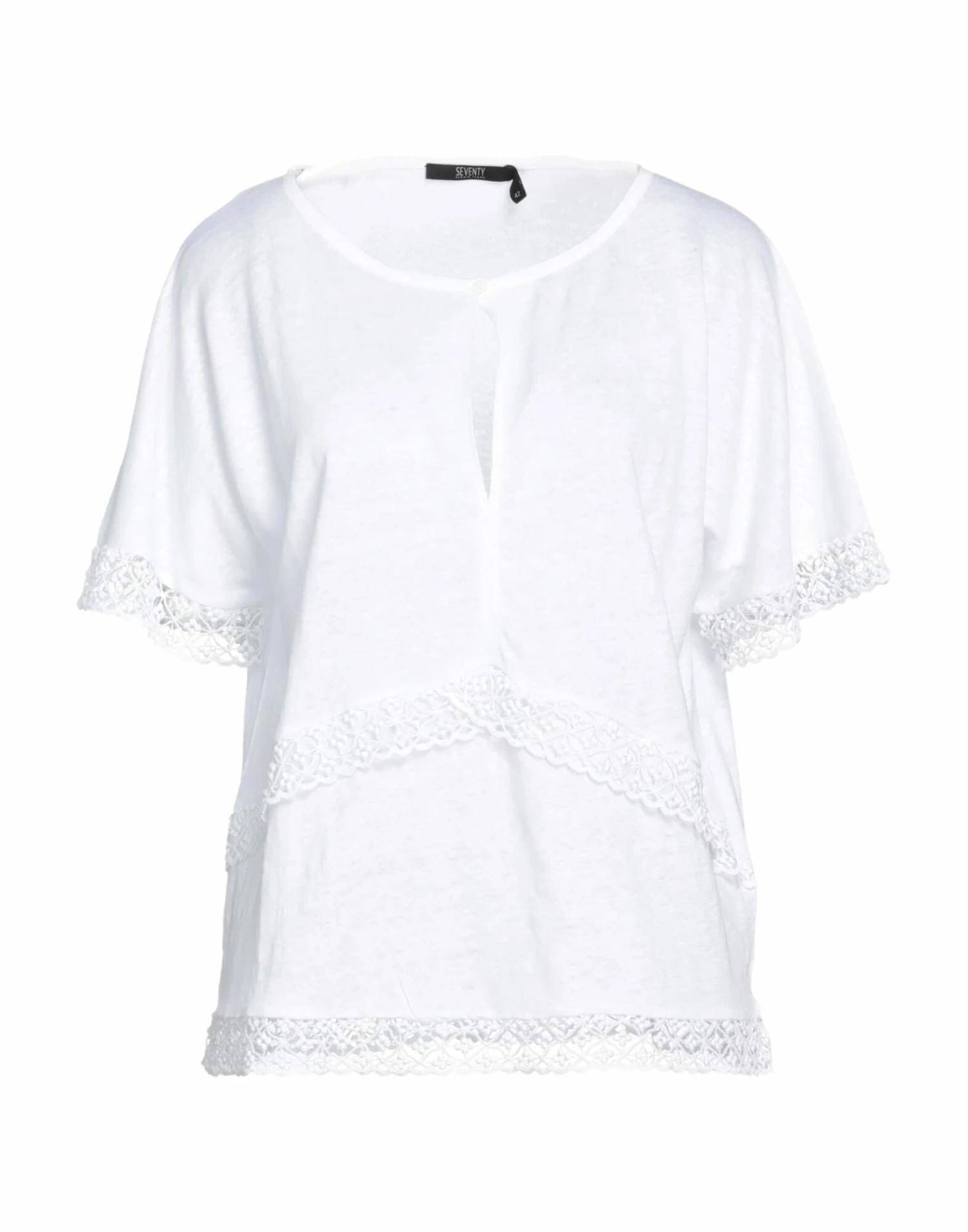 lace, knitted, lightweight knit, no appliqués, solid color, round collar, short sleeves, 1 button, no pockets, contains non-textile parts of animal origin