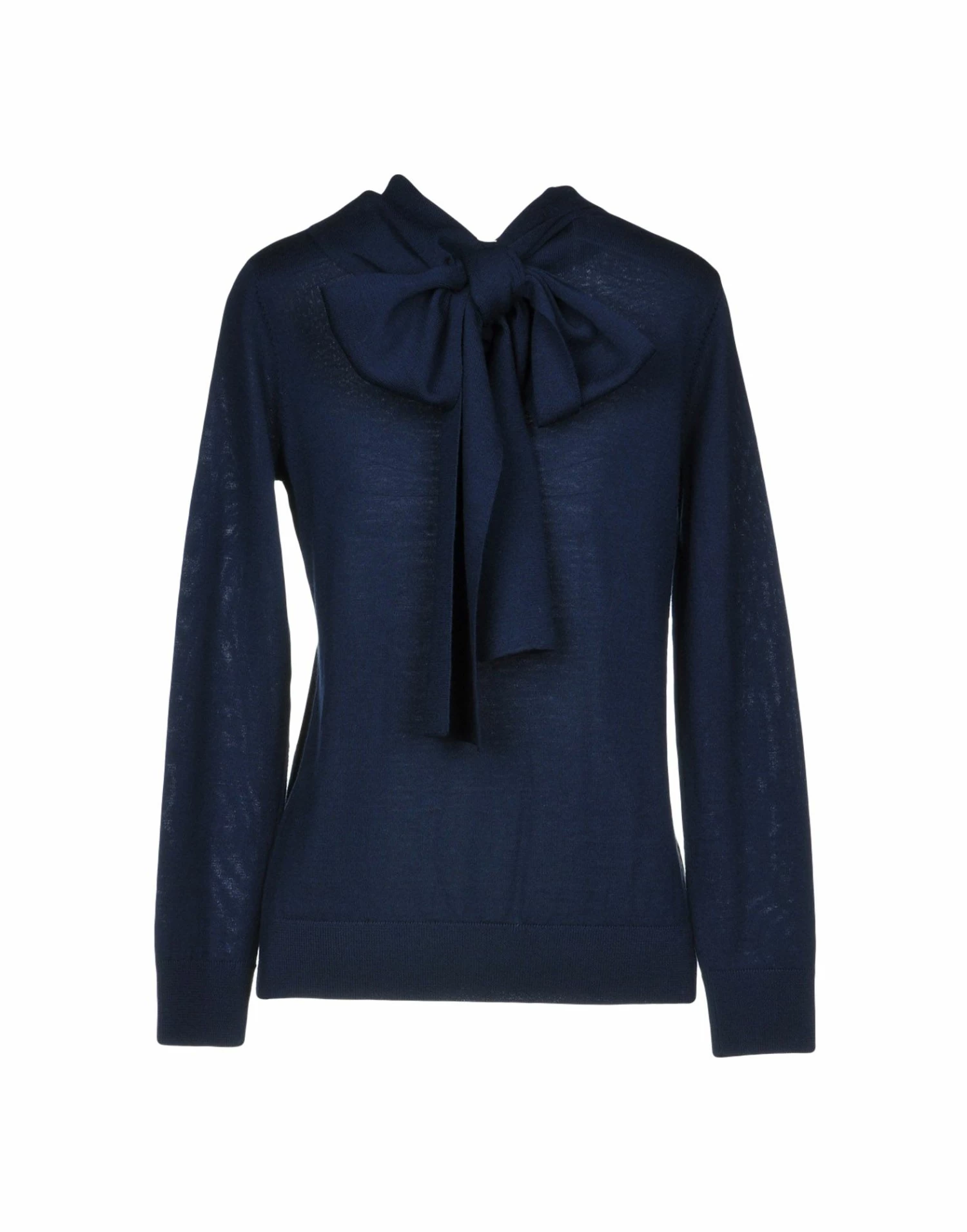 knitted, lightweight knit, laces, bow collar, long sleeves, no pockets, solid color
