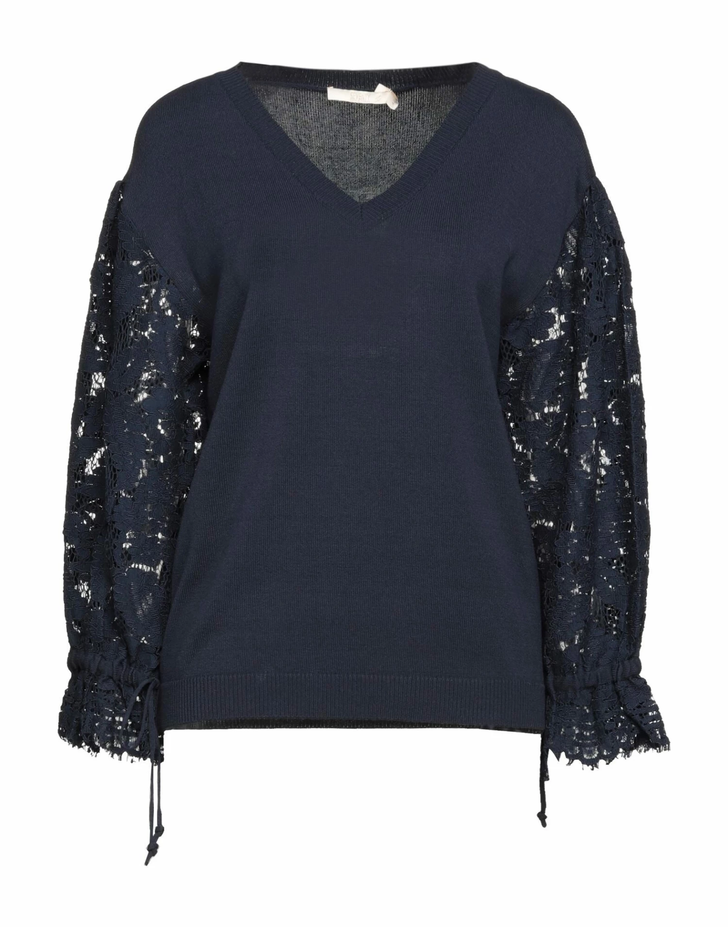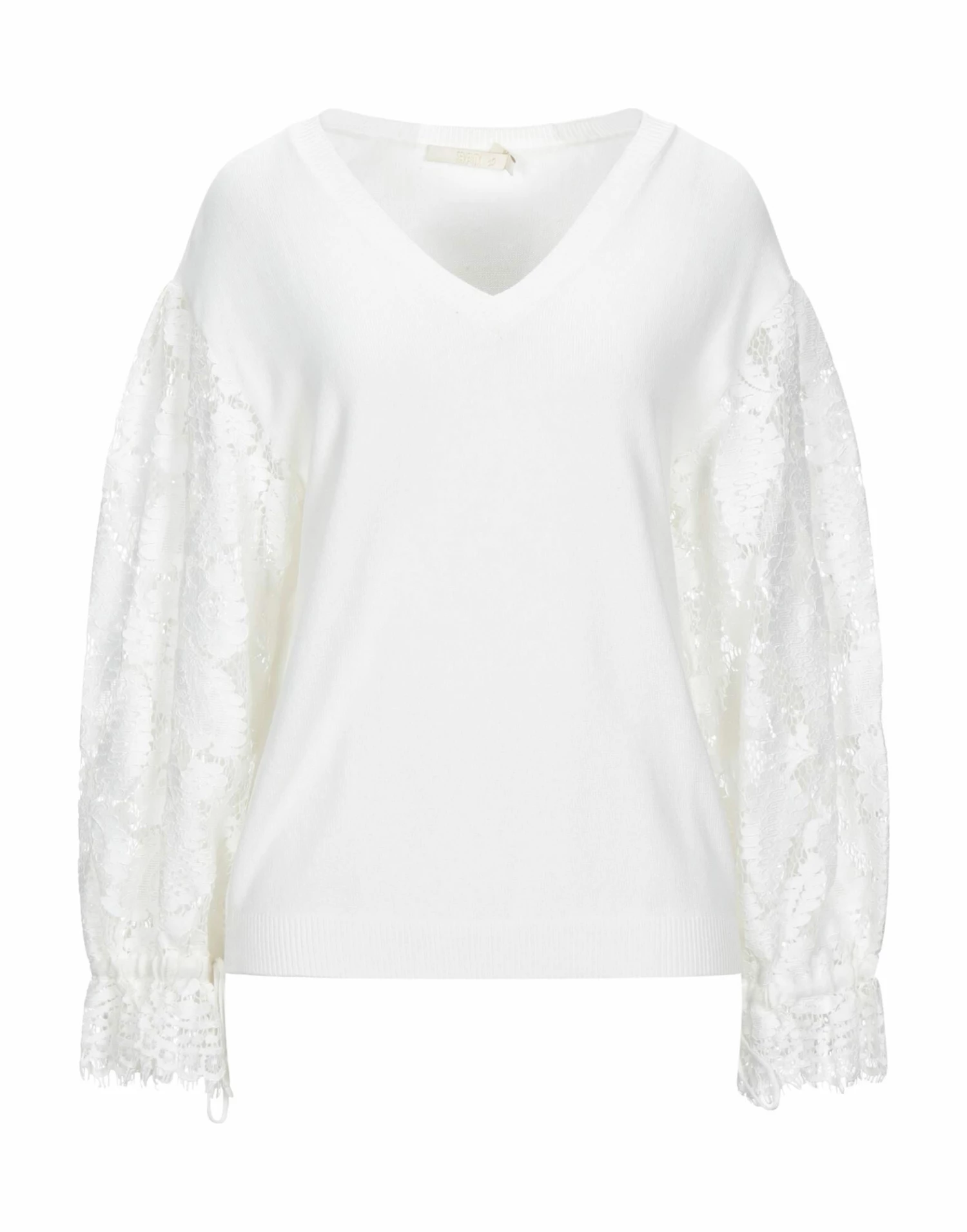 lace, knitted, no appliqués, lightweight knit, v-neck, basic solid color, long sleeves, no pockets