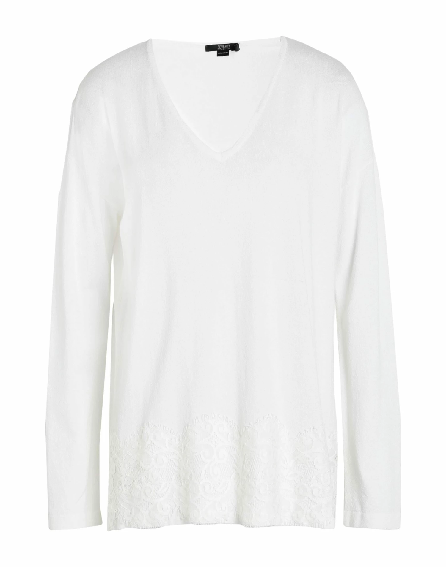 lace, knitted, lightweight knit, no appliqués, solid color, v-neck, long sleeves, no pockets
