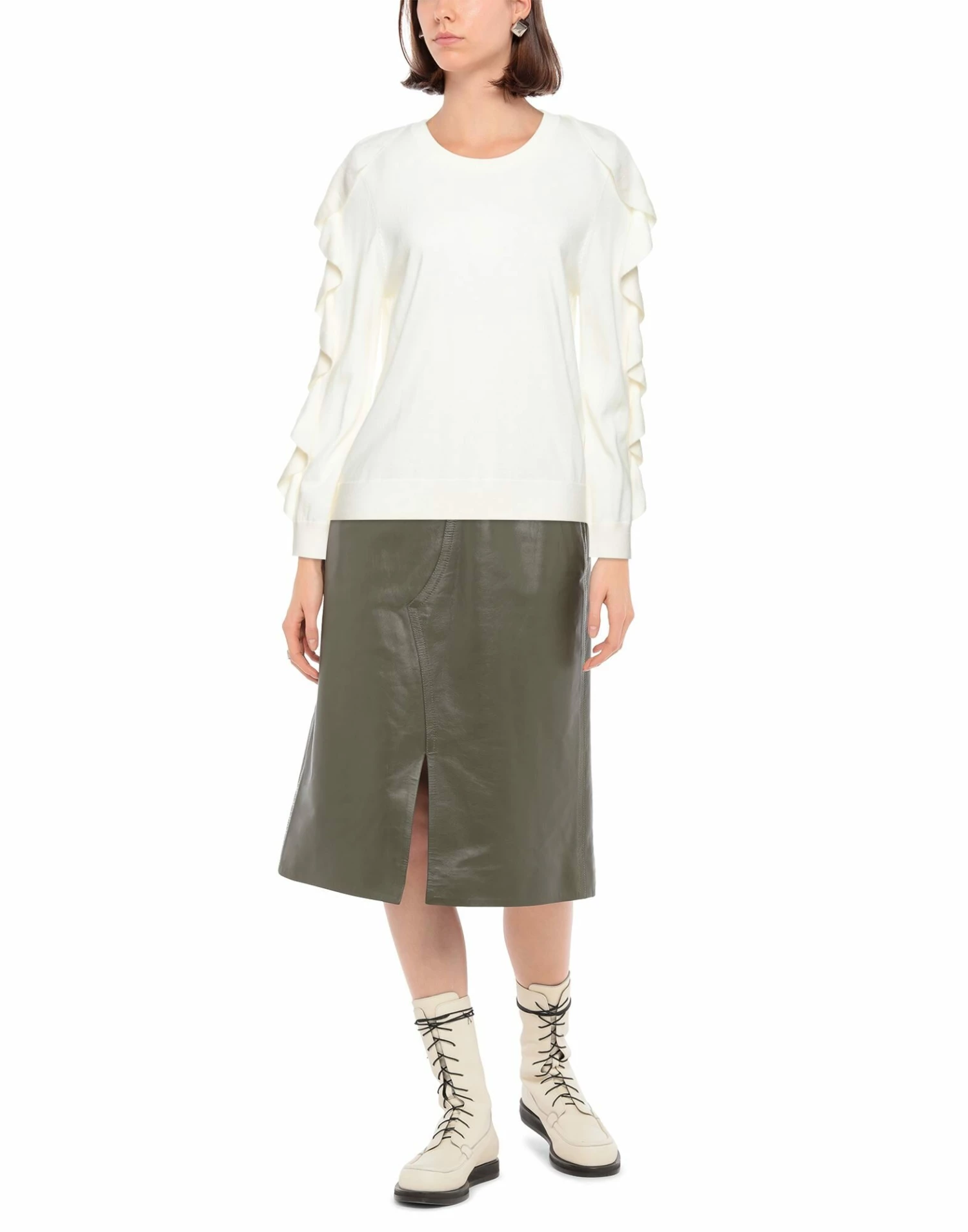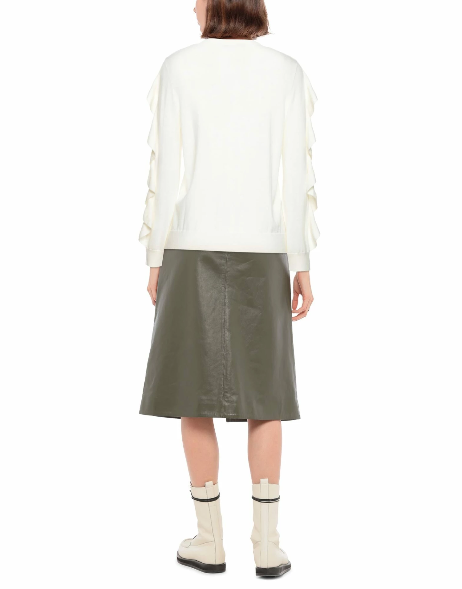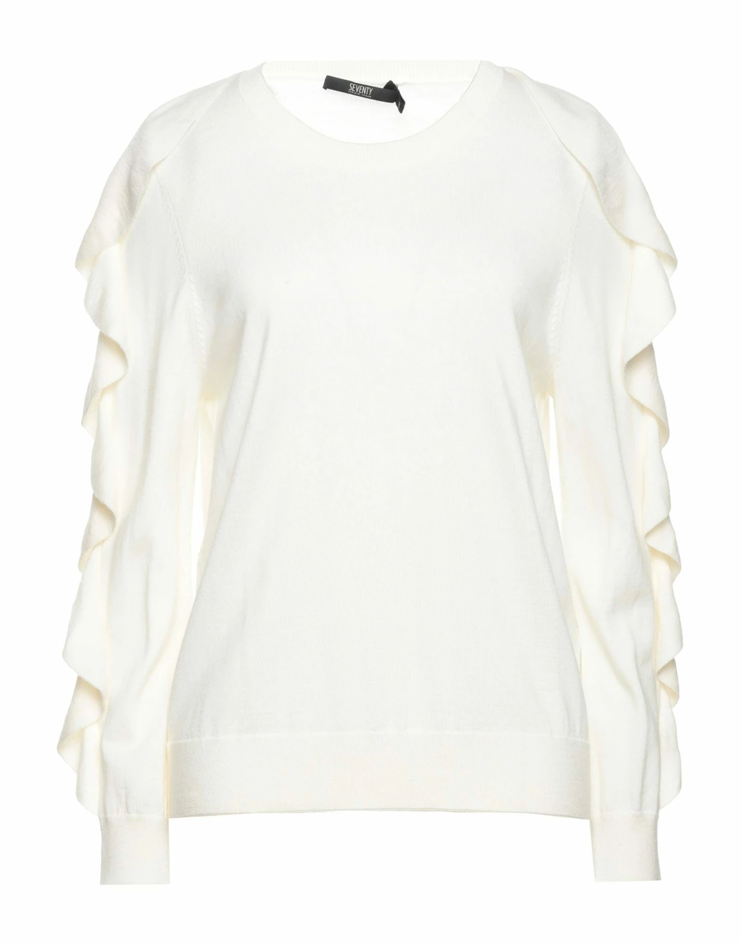 knitted, lightweight knit, ruffles, round collar, long sleeves, no pockets, solid color