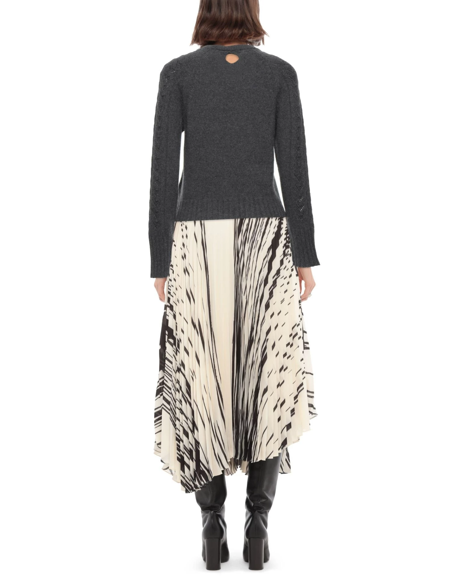 knitted, medium-weight knit, no appliqués, mélange, solid color, round collar, long sleeves, no pockets