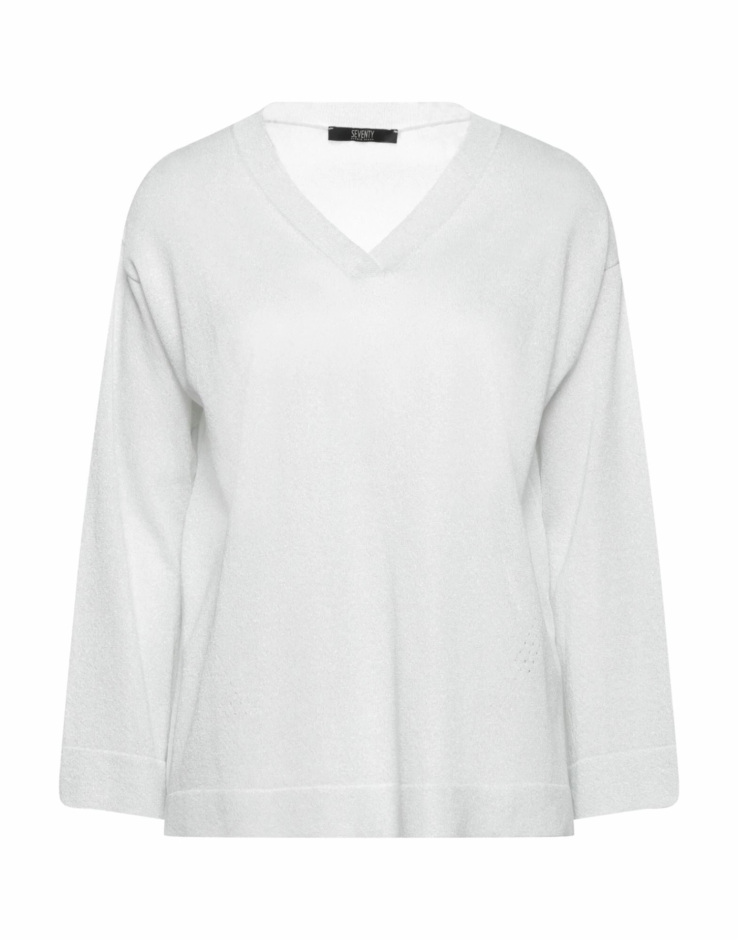 knitted, lamé, lightweight knit, no appliqués, solid color, v-neck, 3/4 length sleeves, no pockets, side slit hemline