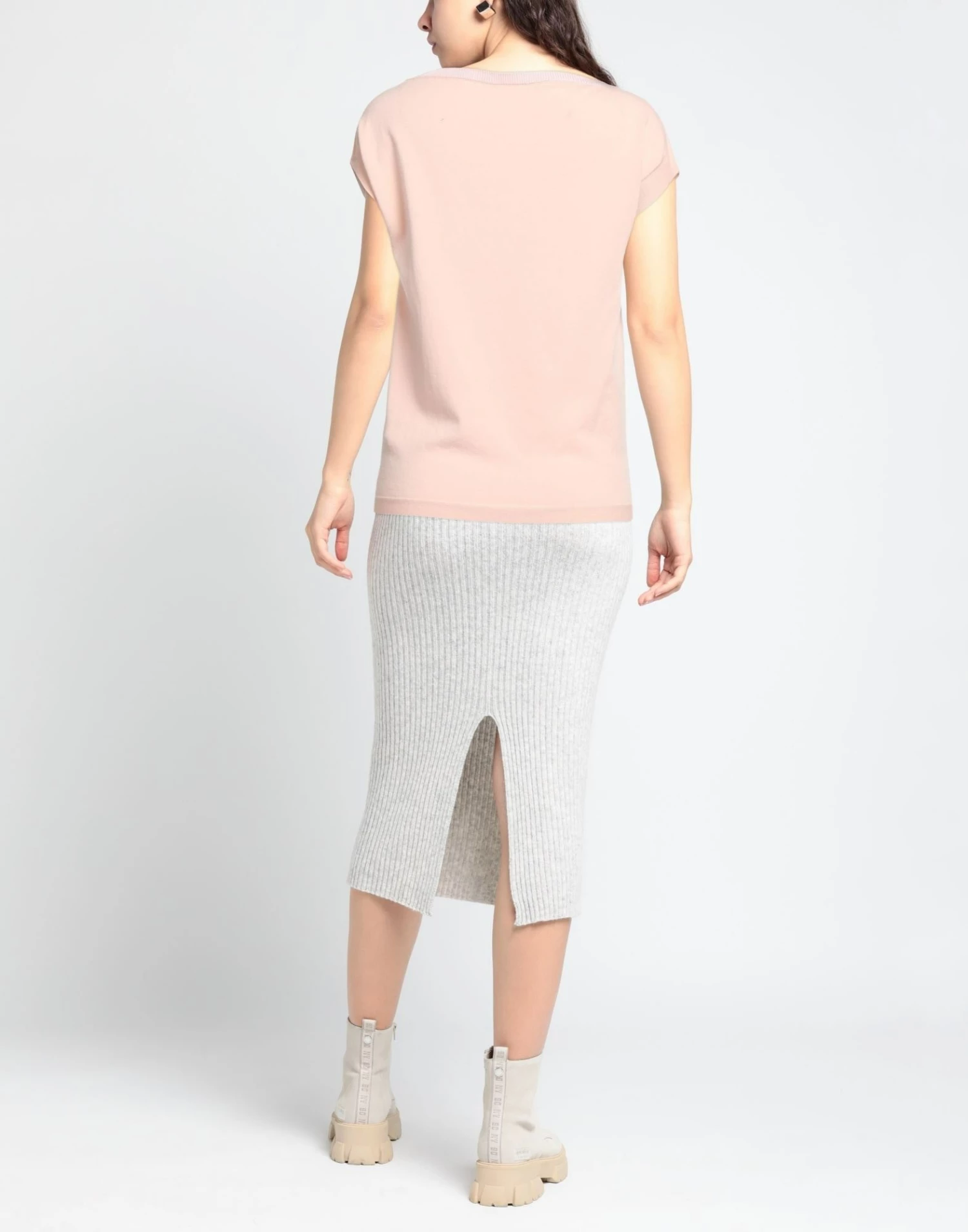 knitted, no appliqués, two-tone, round collar, short sleeves, no pockets, lightweight knit