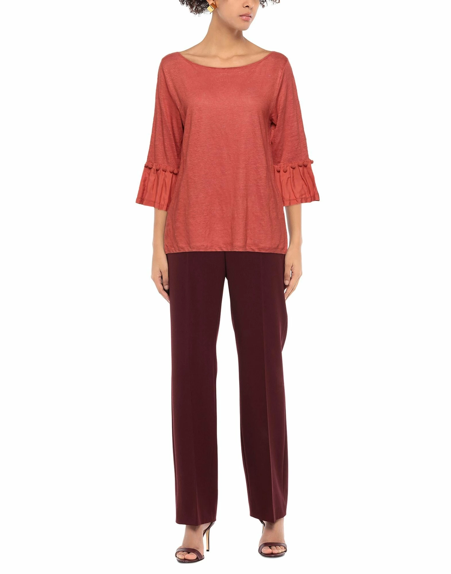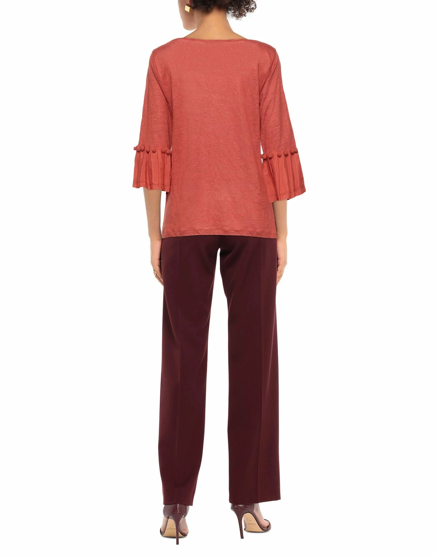knitted, crepe, no appliqués, lightweight knit, round collar, solid color, 3/4 length sleeves, no pockets