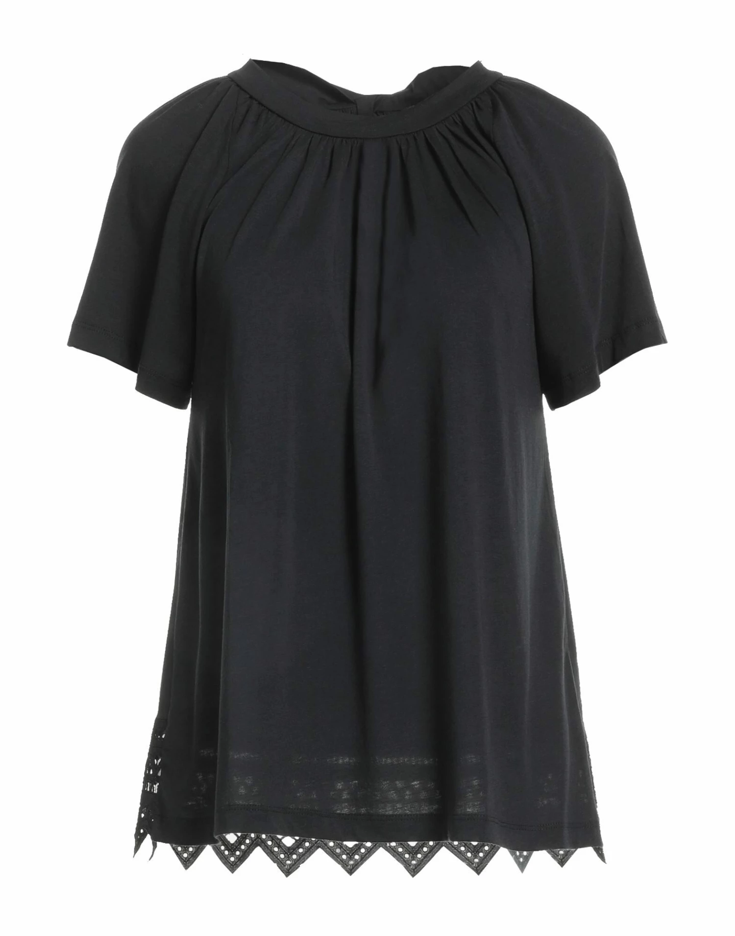 plain weave, jersey, no appliqués, basic solid color, round collar, short sleeves, no pockets, rear closure, self-tie closure