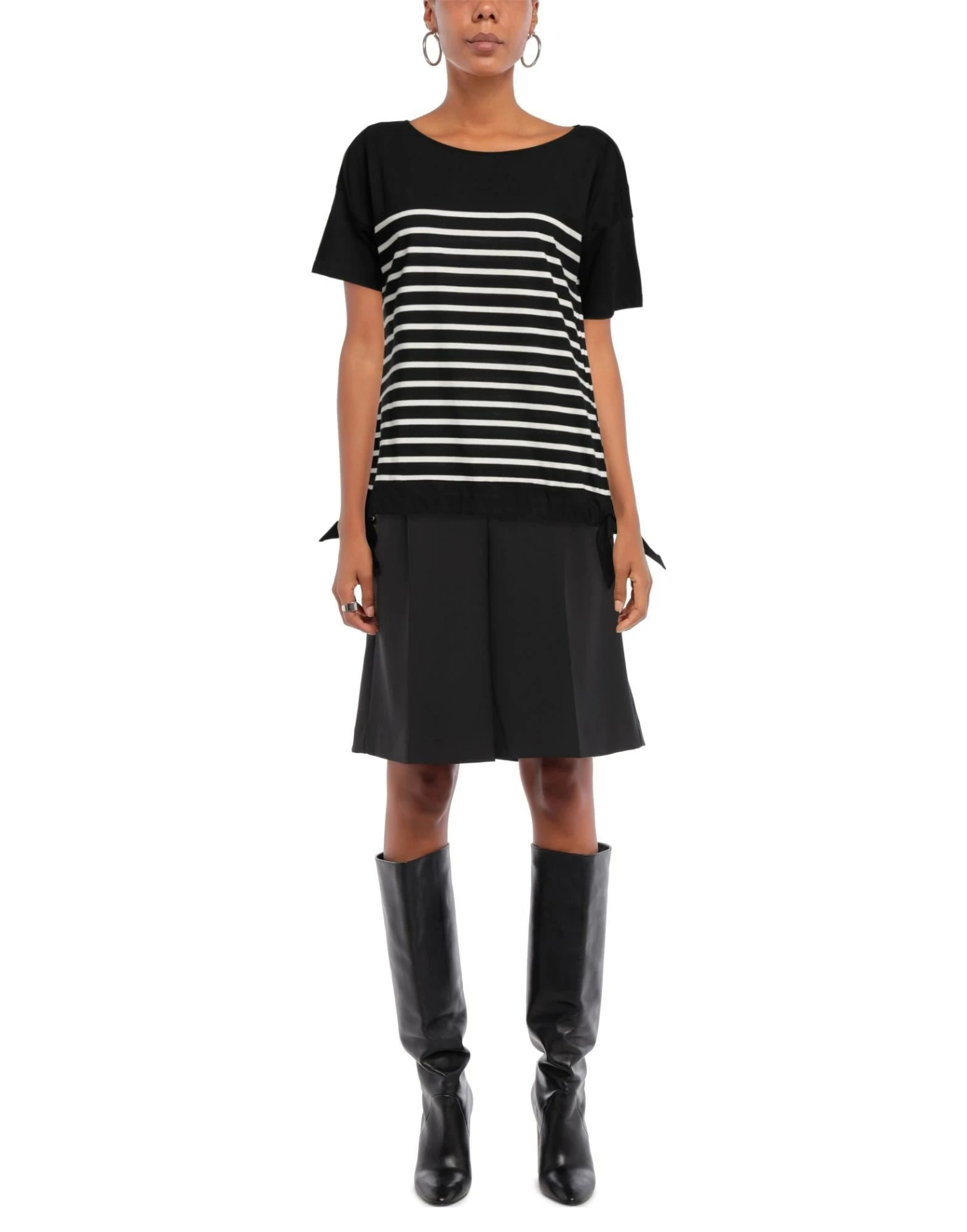 jersey, laces, two-tone, stripes, round collar, short sleeves, no pockets, side slit hemline