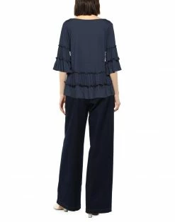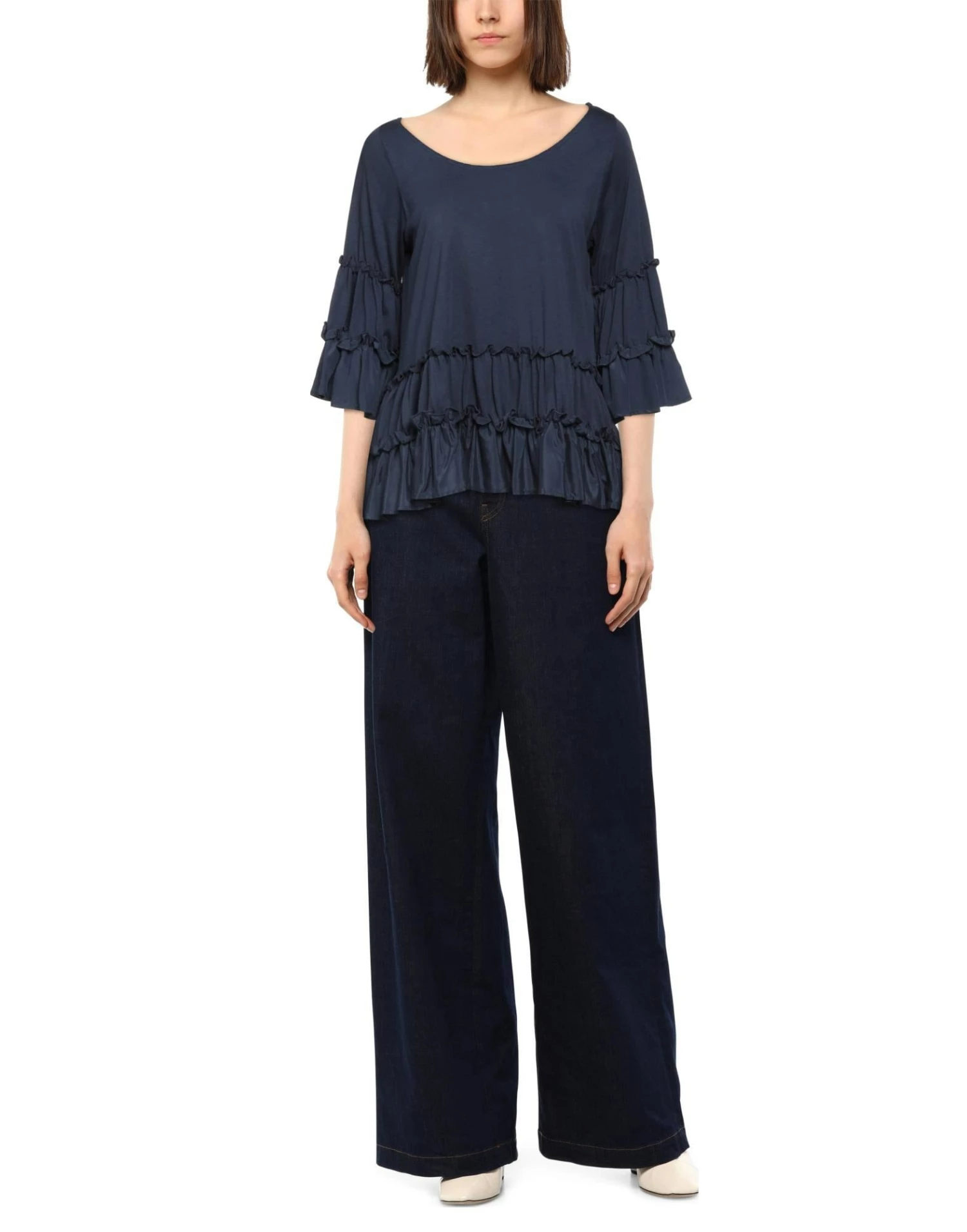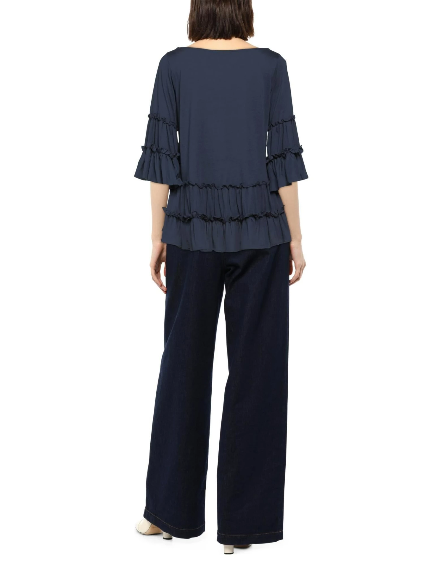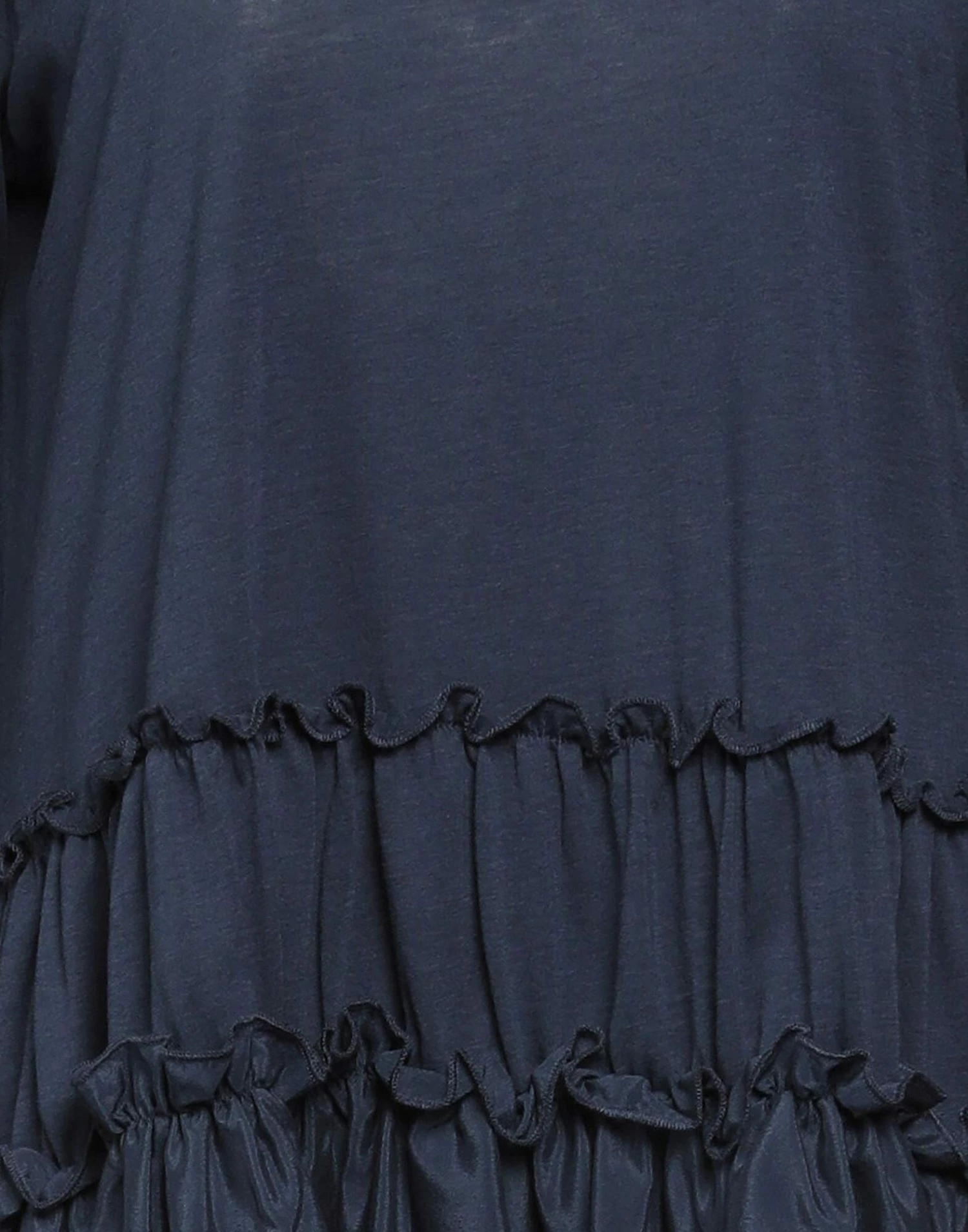 jersey, frills, basic solid color, round collar, 3/4 length sleeves, no pockets