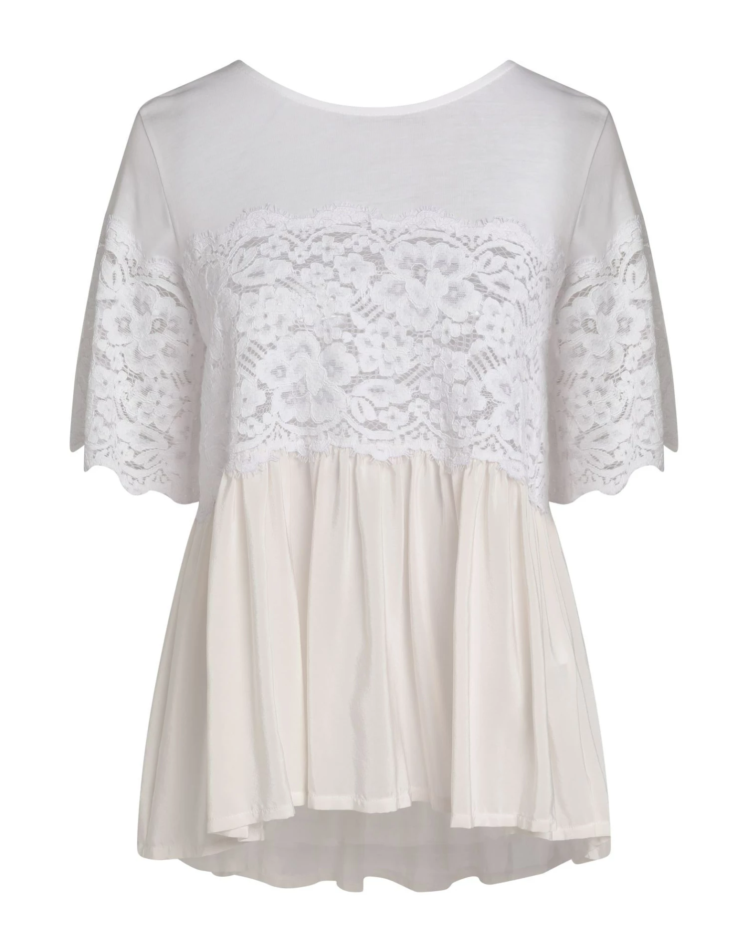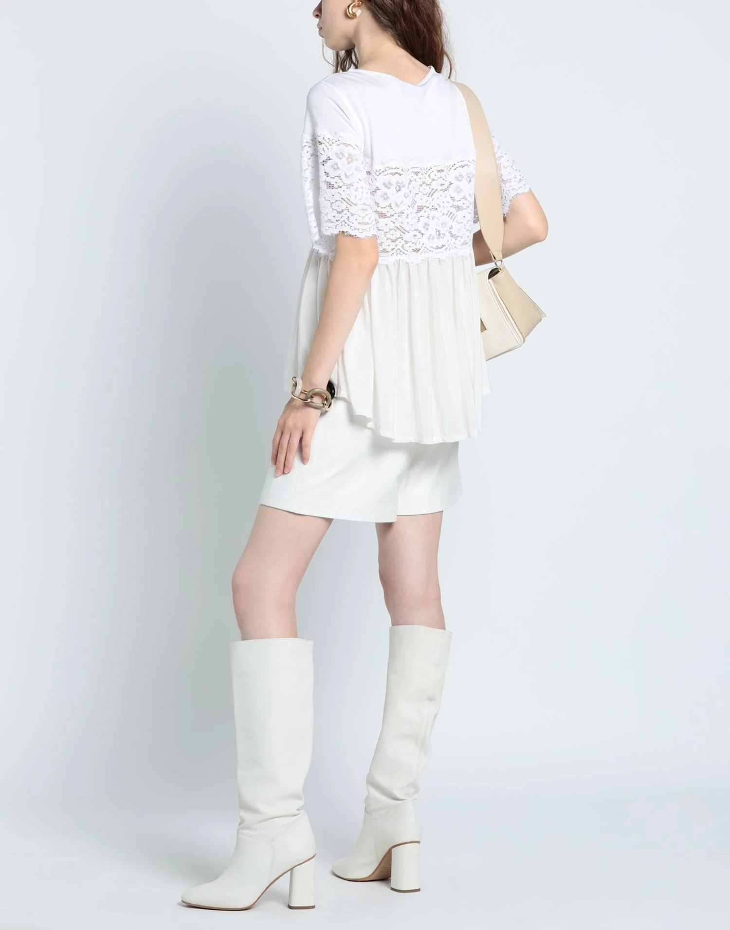 lace, jersey, frills, solid color, round collar, short sleeves, no pockets